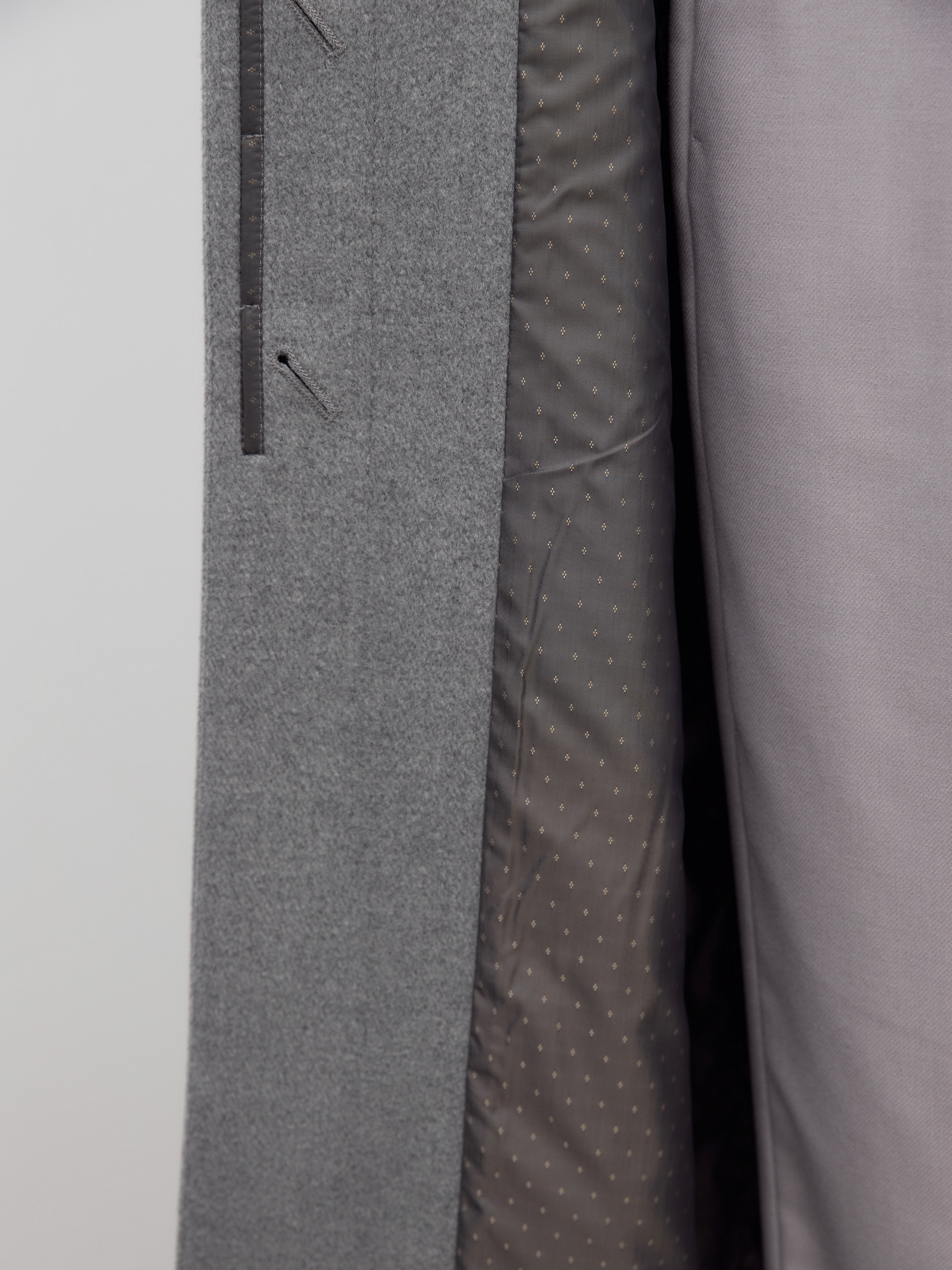 Пальто прямого силуэта из ворсовой шерстяной ткани в классическом сером цвете. Отложной воротник с застежкой на крупную контрастную пуговицу, супатная застёжка, которая надежно фиксирует пальто и при этом не берет на себя много внимания. Комбинированный рукав очень гармонично и выдержанно смотрится со всеми элементами данного пальто, при этом еще и очень комфортный. Высокая шлица в среднем шве спинки для комфорта шага, глубокие и вместительные карманы-листочки. Пальто декорировано широкой отделочной строчкой. Длина до середины икры. Пальто выполнено с использованием мембраны Raft Pro, которая надежно защитит от ветра. Произведено в Санкт-Петербурге.