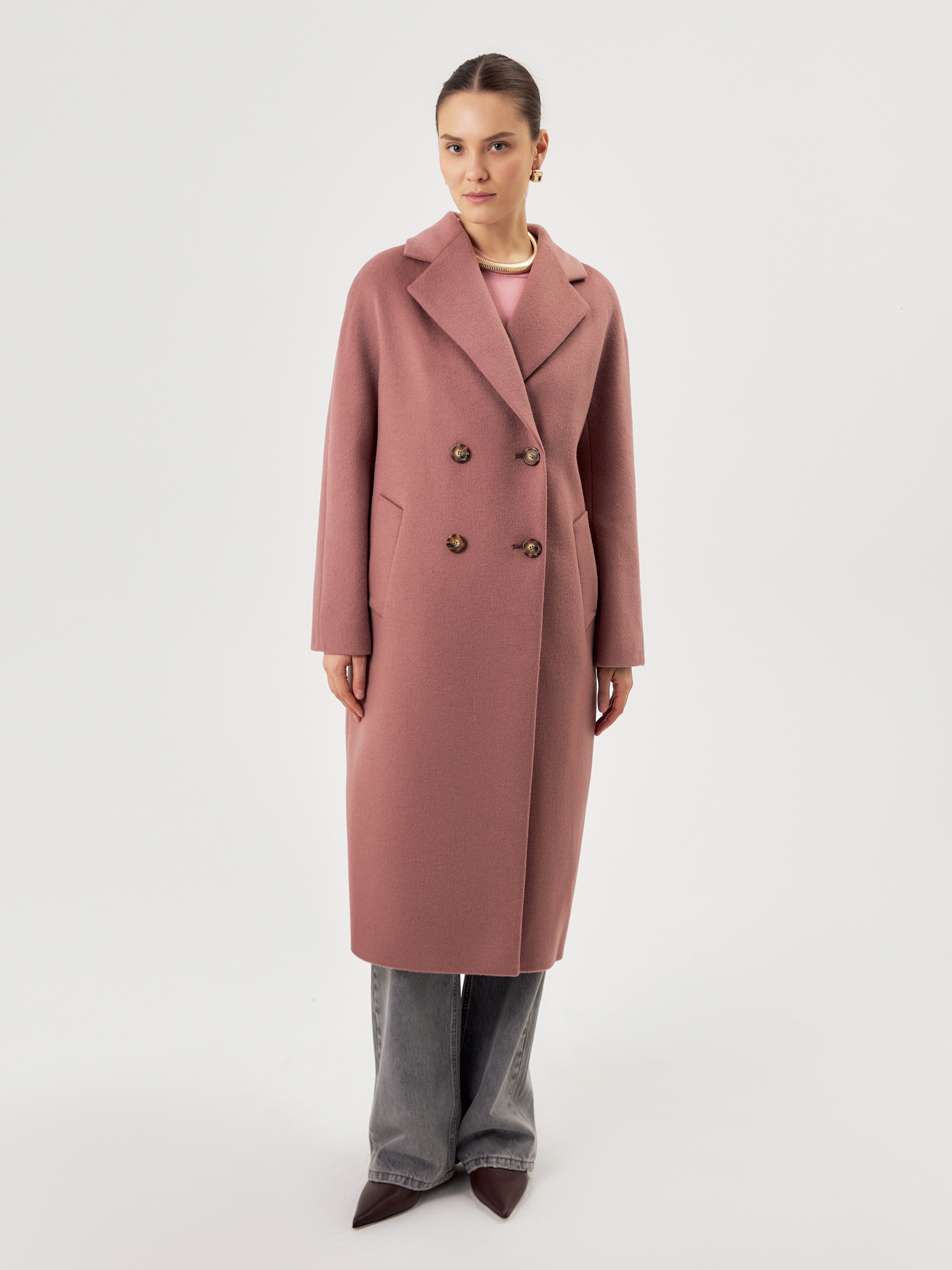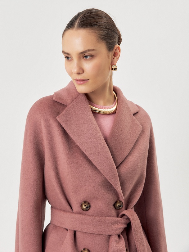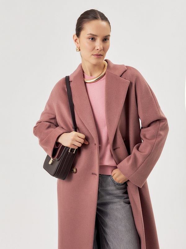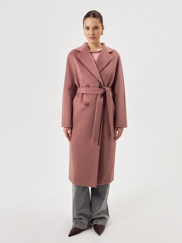 Двубортное пальто силуэта удлиненый кокон - это всем полюбившаяся классика пальто, представленная в новом и современнов виденье и в палитре уникальных оттенков. Пальто комфортной длины ниже колена. Рукав кимоно не только визуально делает более уютный и расслабленный образ, но и создает дополнительный комфорт для Вас, ведь рукав такого типа не стесняет движений и позволяет надевать вниз даже объемные вещи. Горловину пальто обрамляет классический английский воротник. Пальто имеет два глубоких кармана с листочками. Застегивается на два ряда стильных крупных пуговиц под натуральный рог. Дополняет образ съемный пояс из основной ткани, благодаря которому можно подчеркнуть талию и создать более женственный и хрупкий образ. Пальто изготовлено из премиальной ткани с высоким содержанием шерсти в роскошном цвете "пыльная роза". Произведено в Санкт-Петербурге.