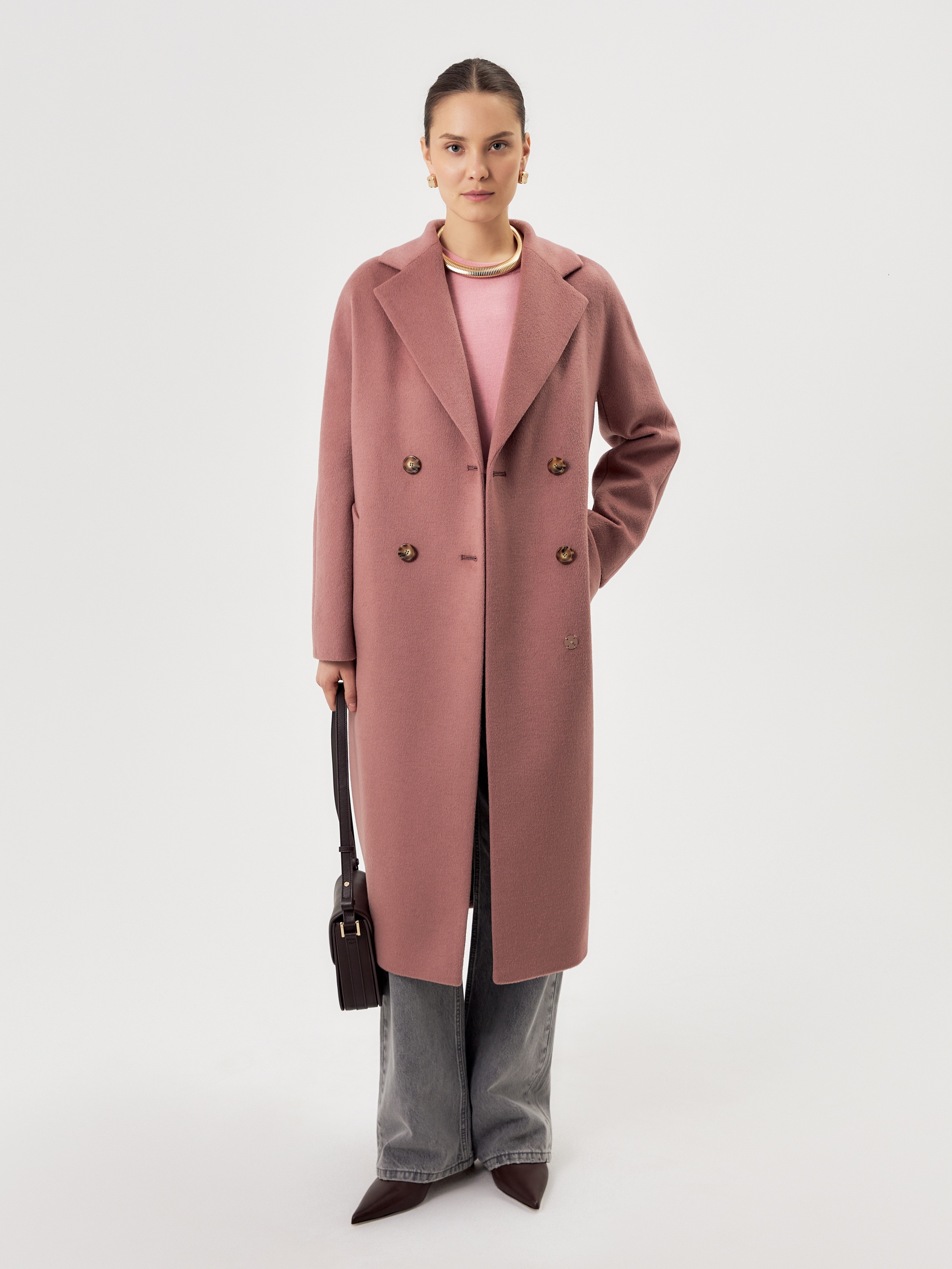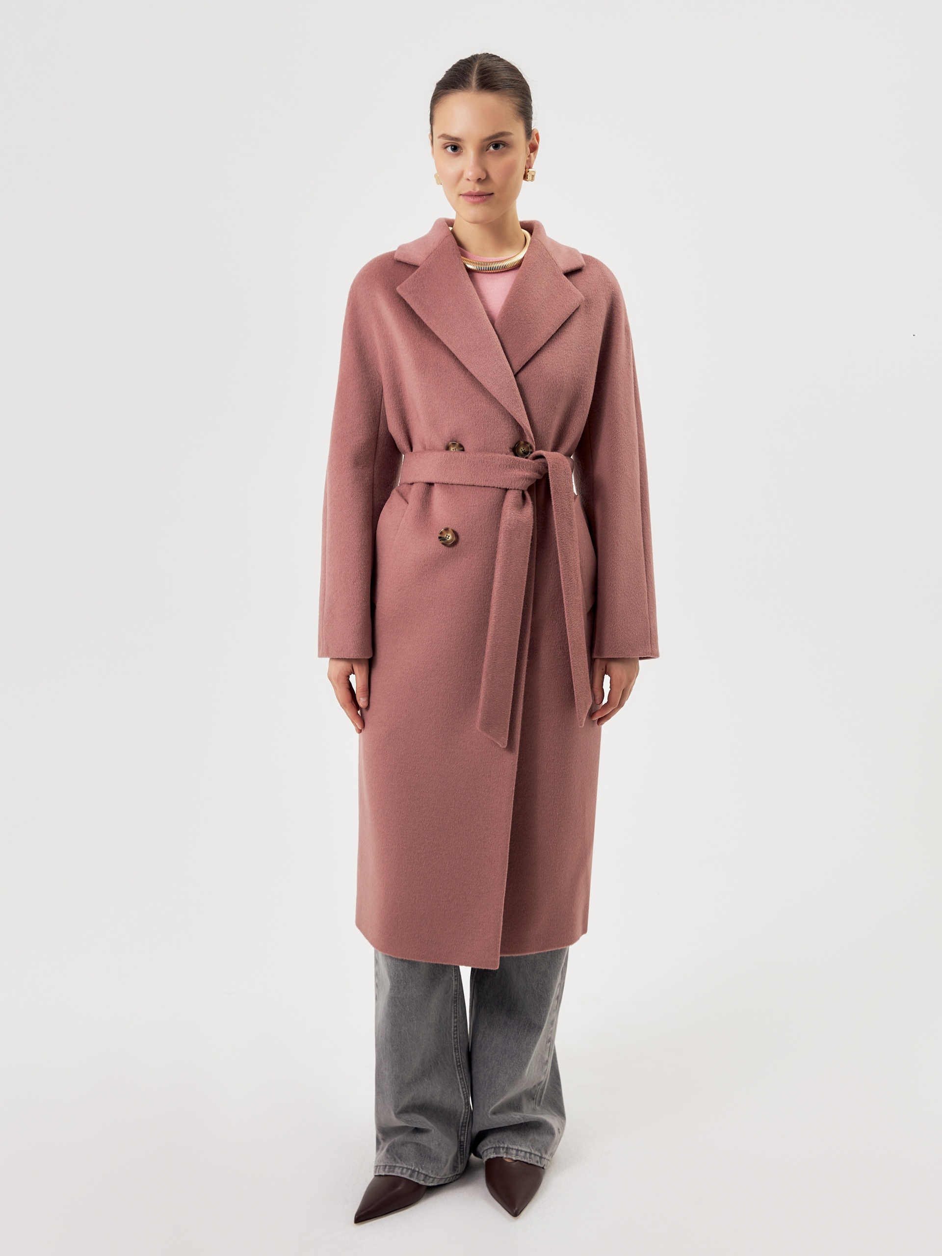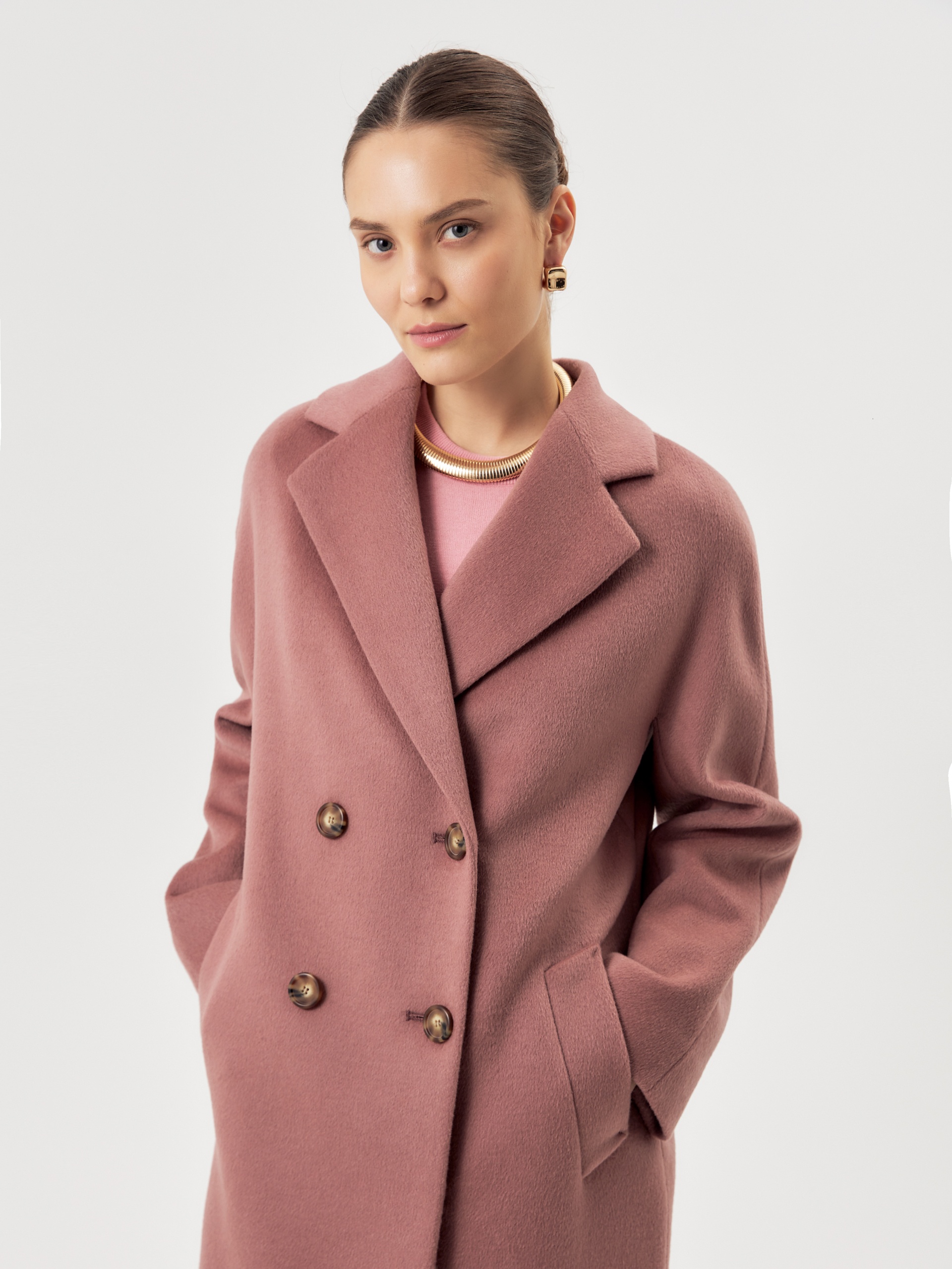 Двубортное пальто силуэта удлиненый кокон - это всем полюбившаяся классика пальто, представленная в новом и современнов виденье и в палитре уникальных оттенков. Пальто комфортной длины ниже колена. Рукав кимоно не только визуально делает более уютный и расслабленный образ, но и создает дополнительный комфорт для Вас, ведь рукав такого типа не стесняет движений и позволяет надевать вниз даже объемные вещи. Горловину пальто обрамляет классический английский воротник. Пальто имеет два глубоких кармана с листочками. Застегивается на два ряда стильных крупных пуговиц под натуральный рог. Дополняет образ съемный пояс из основной ткани, благодаря которому можно подчеркнуть талию и создать более женственный и хрупкий образ. Пальто изготовлено из премиальной ткани с высоким содержанием шерсти в роскошном цвете "пыльная роза". Произведено в Санкт-Петербурге.