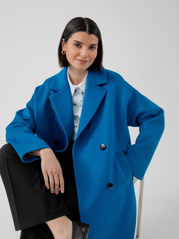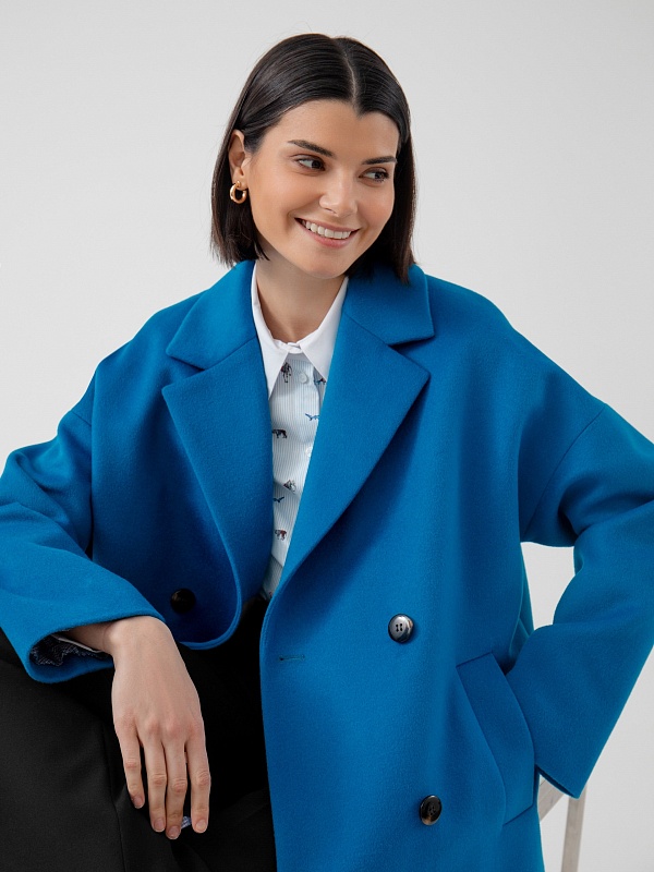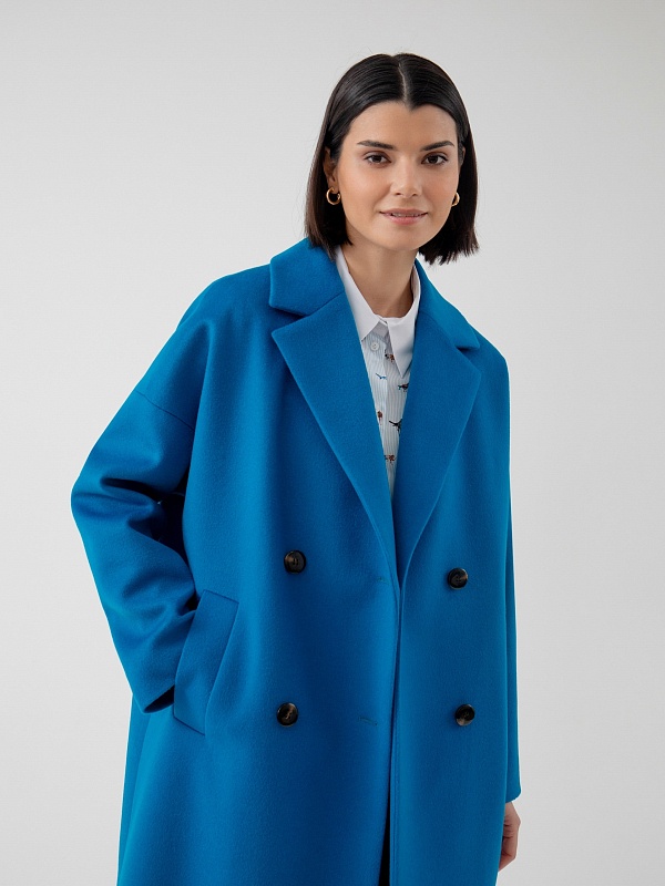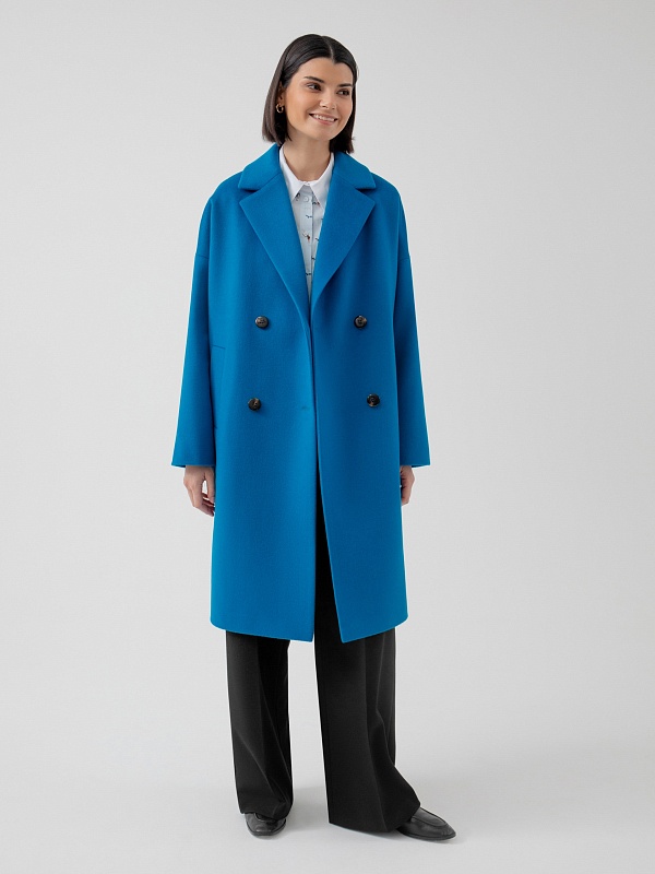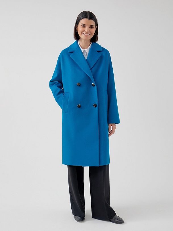 Двубортное пальто прямого силуэта из премиальной шерстяной ворсовой ткани в ярком и модном цвете "миконский голубой". Английский воротник, комфортный спущенный рукав и оптимальная длина, закрывающая колено, будут не только очень удобны при использовании, но и долго не выйдут из моды. А роскошный цвет добавит весеннего настроения и поможет создать неповторимый образ. Застегивается пальто на ряд стильных крупных пуговиц под натуральный рог. Произведено в Санкт-Петербурге.