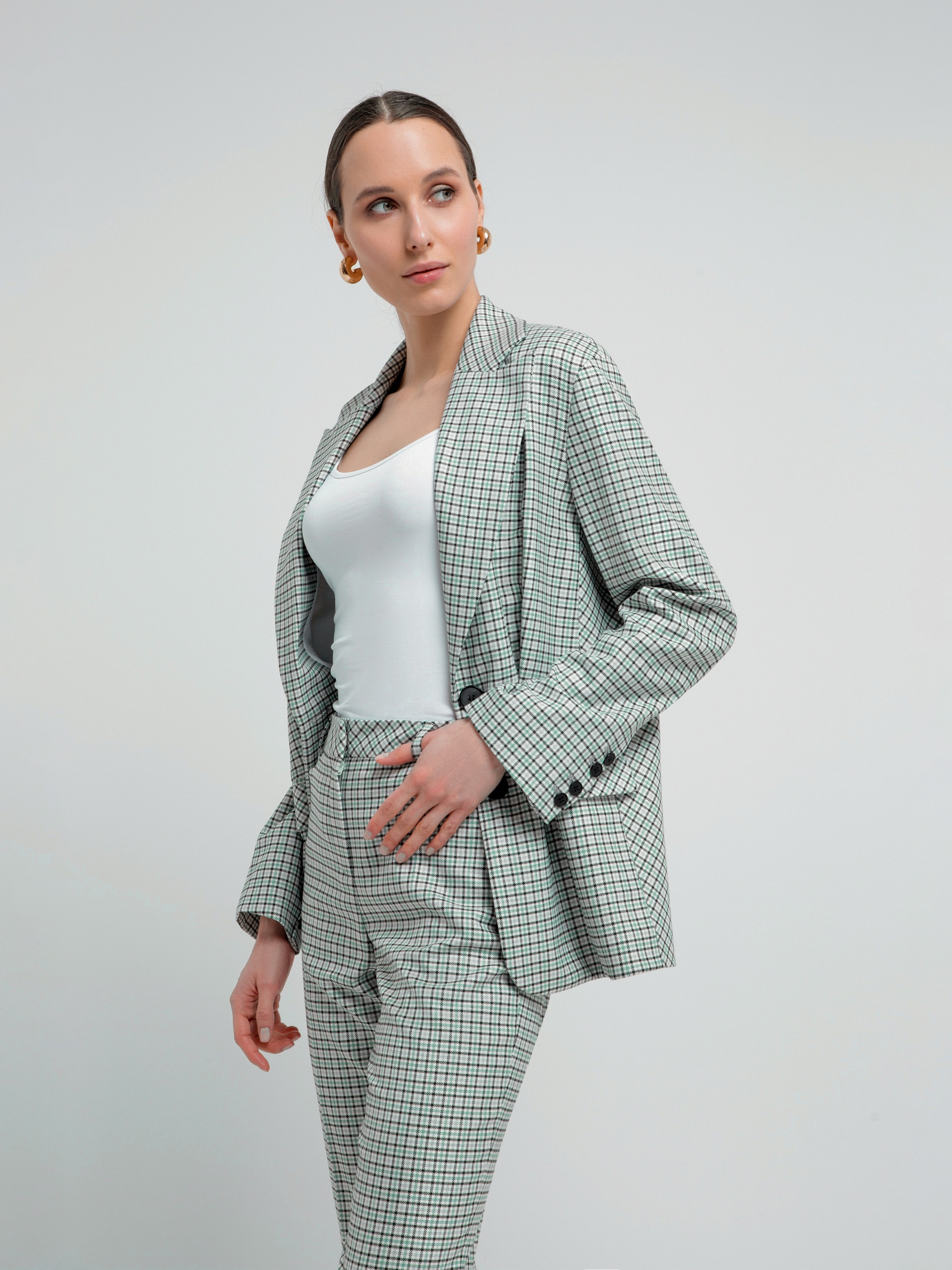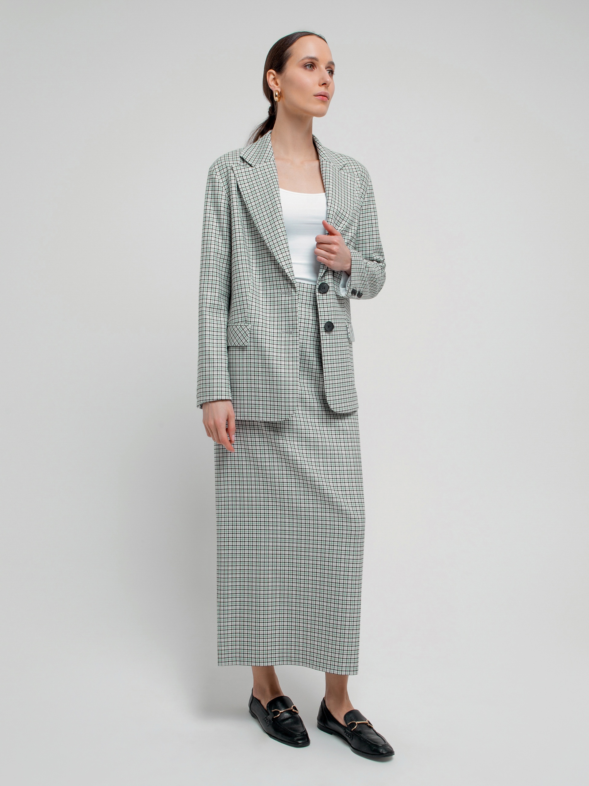 Однобортный жакет в мелкую клетку