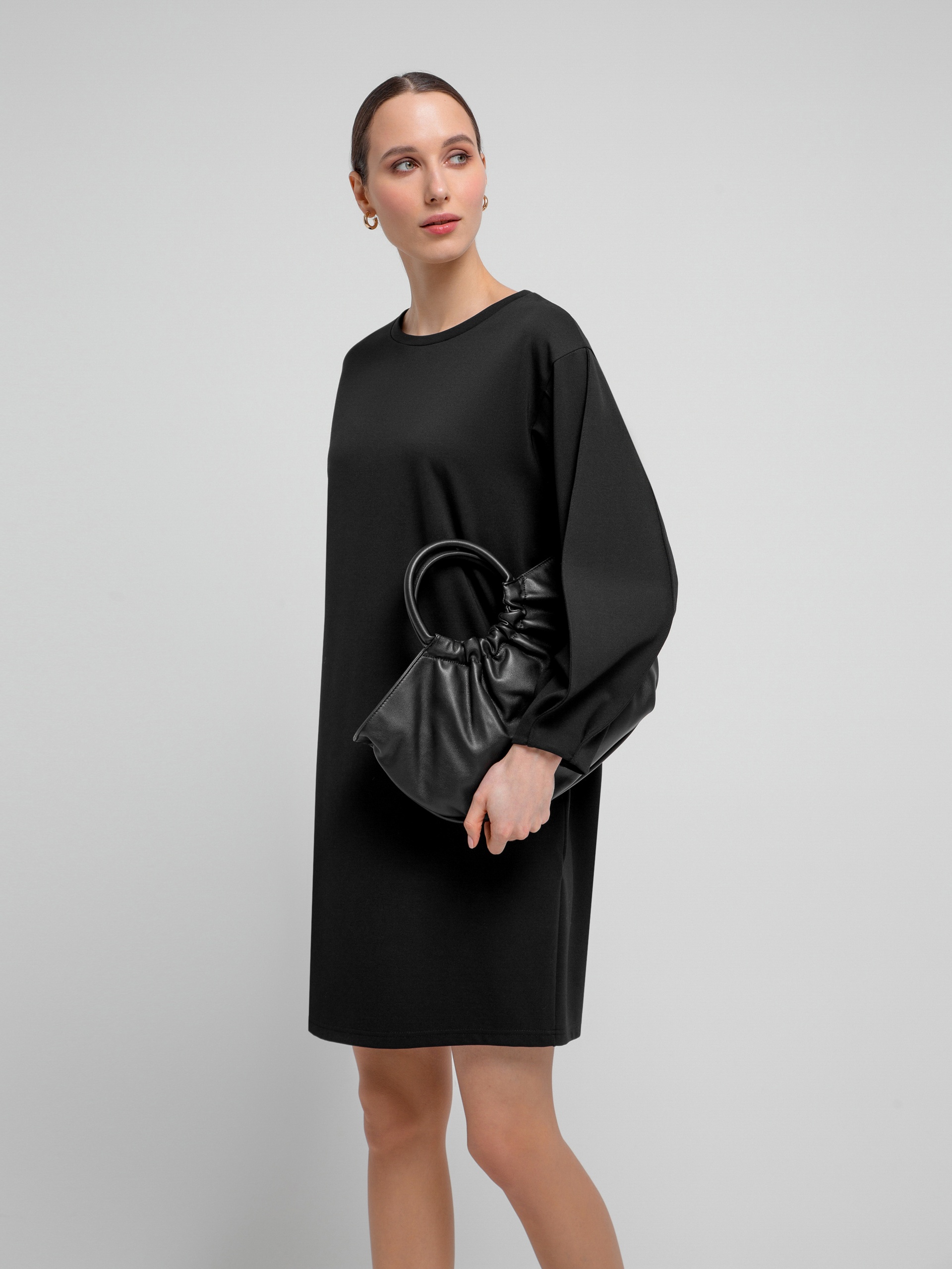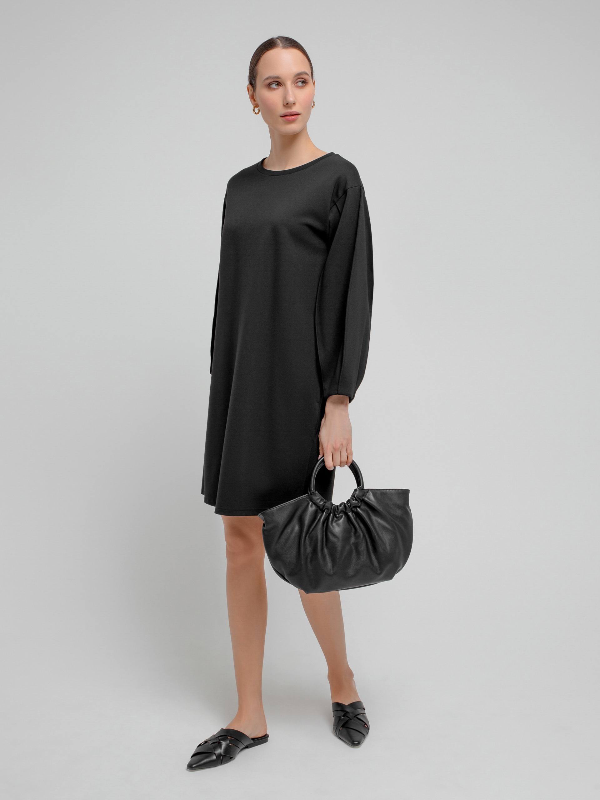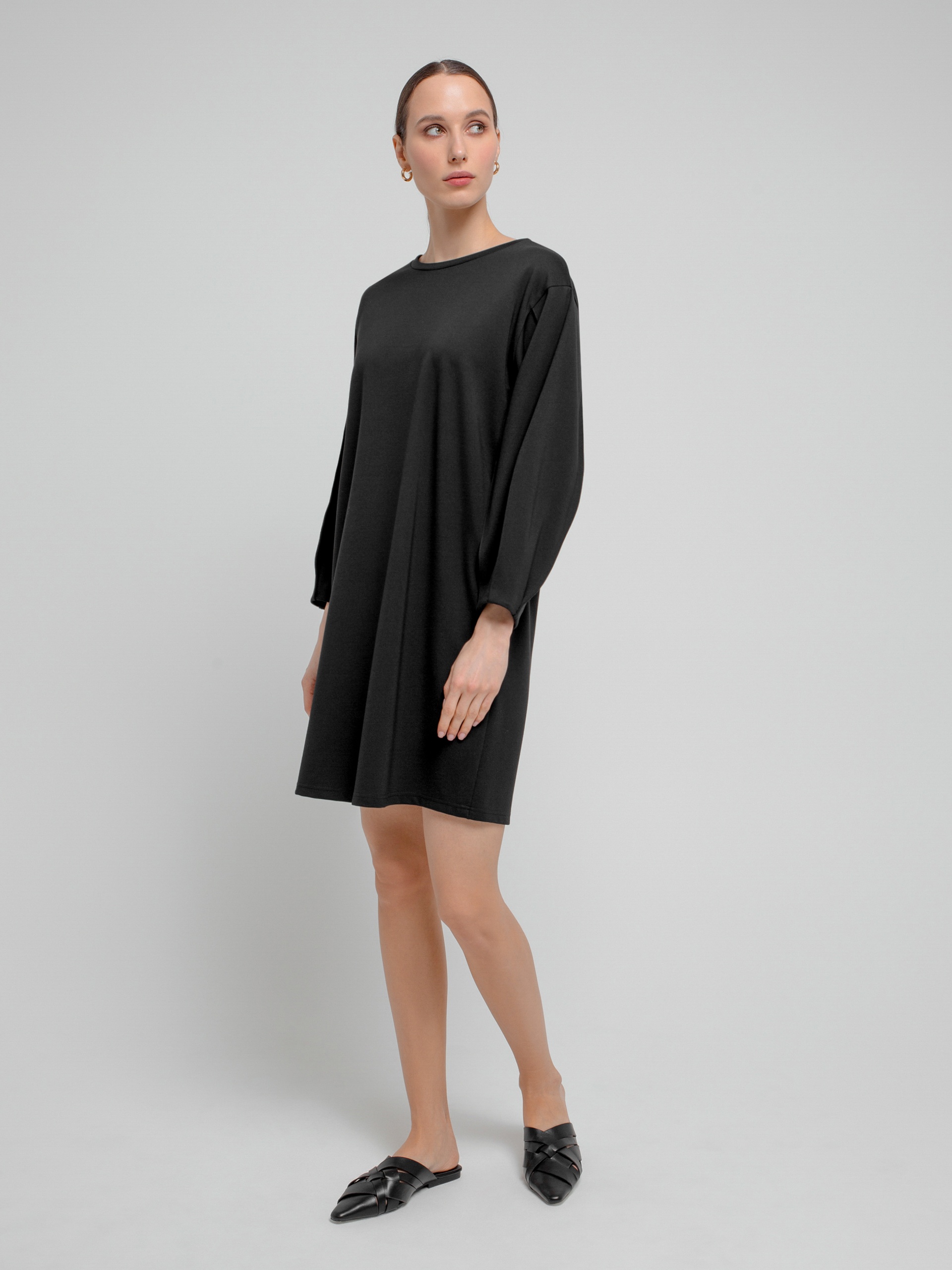 Трикотажное платье полуприлегающего силуэта с круглой горловиной и фантазийными рукавами на тонких манжетах....
