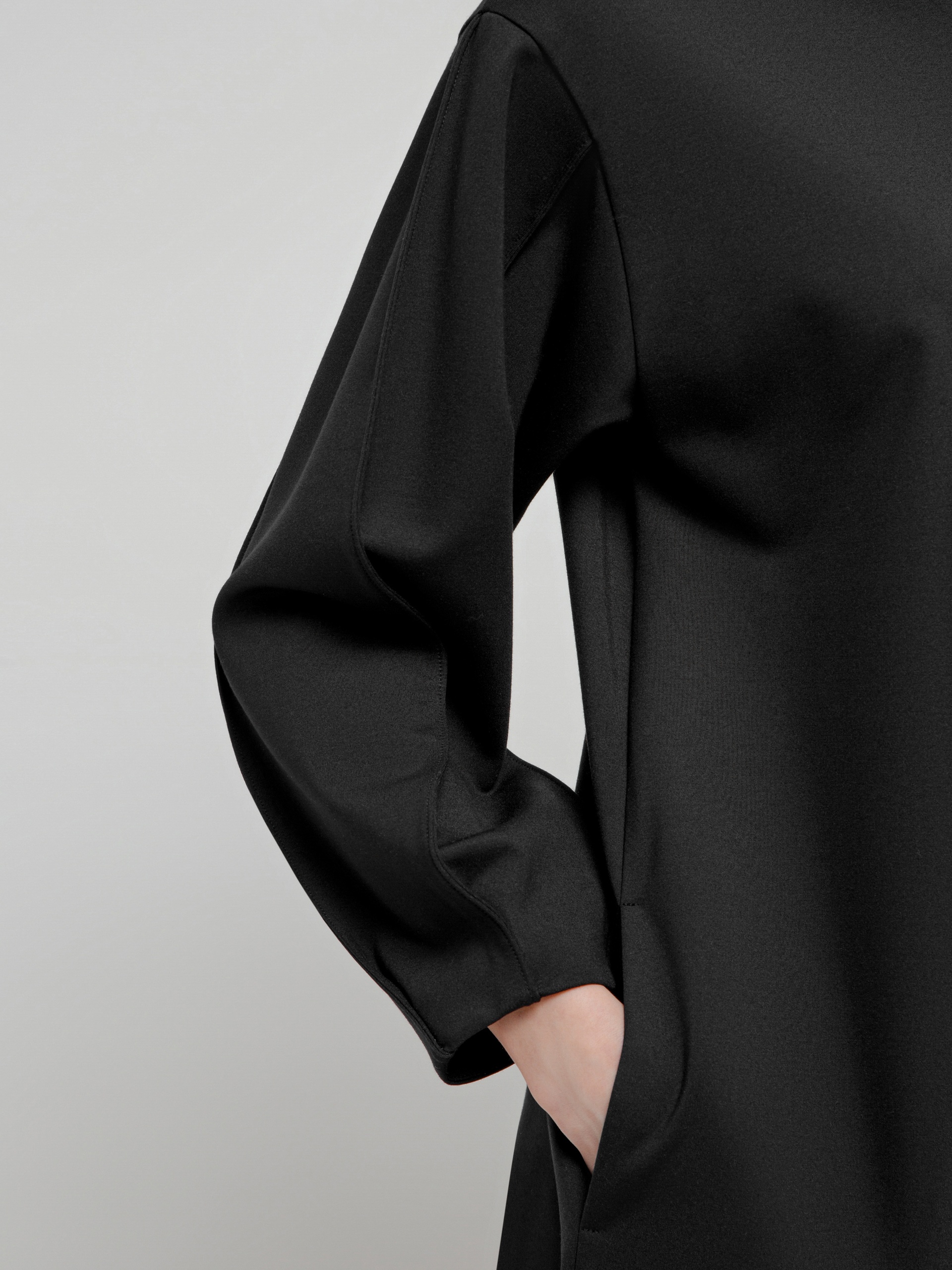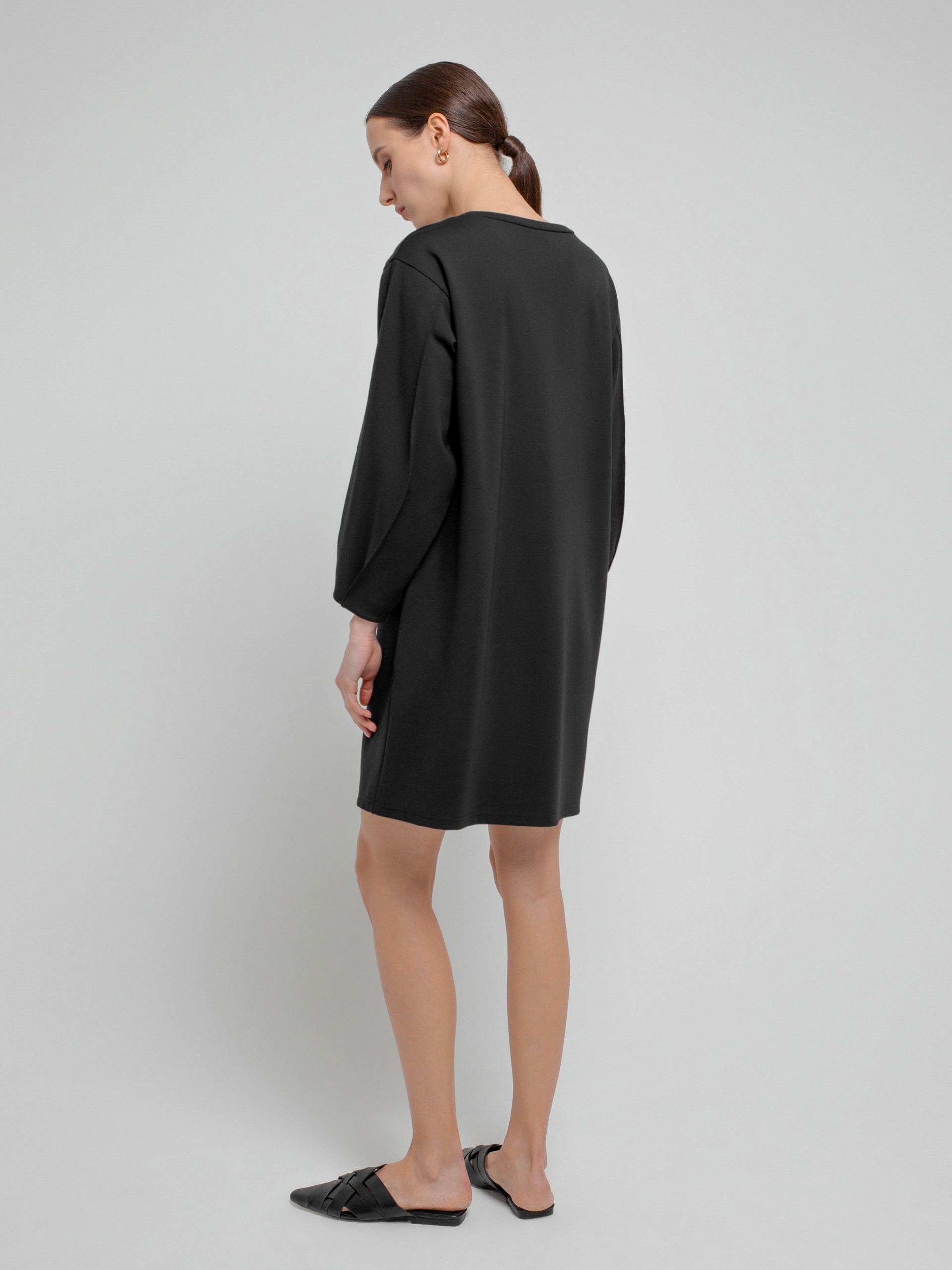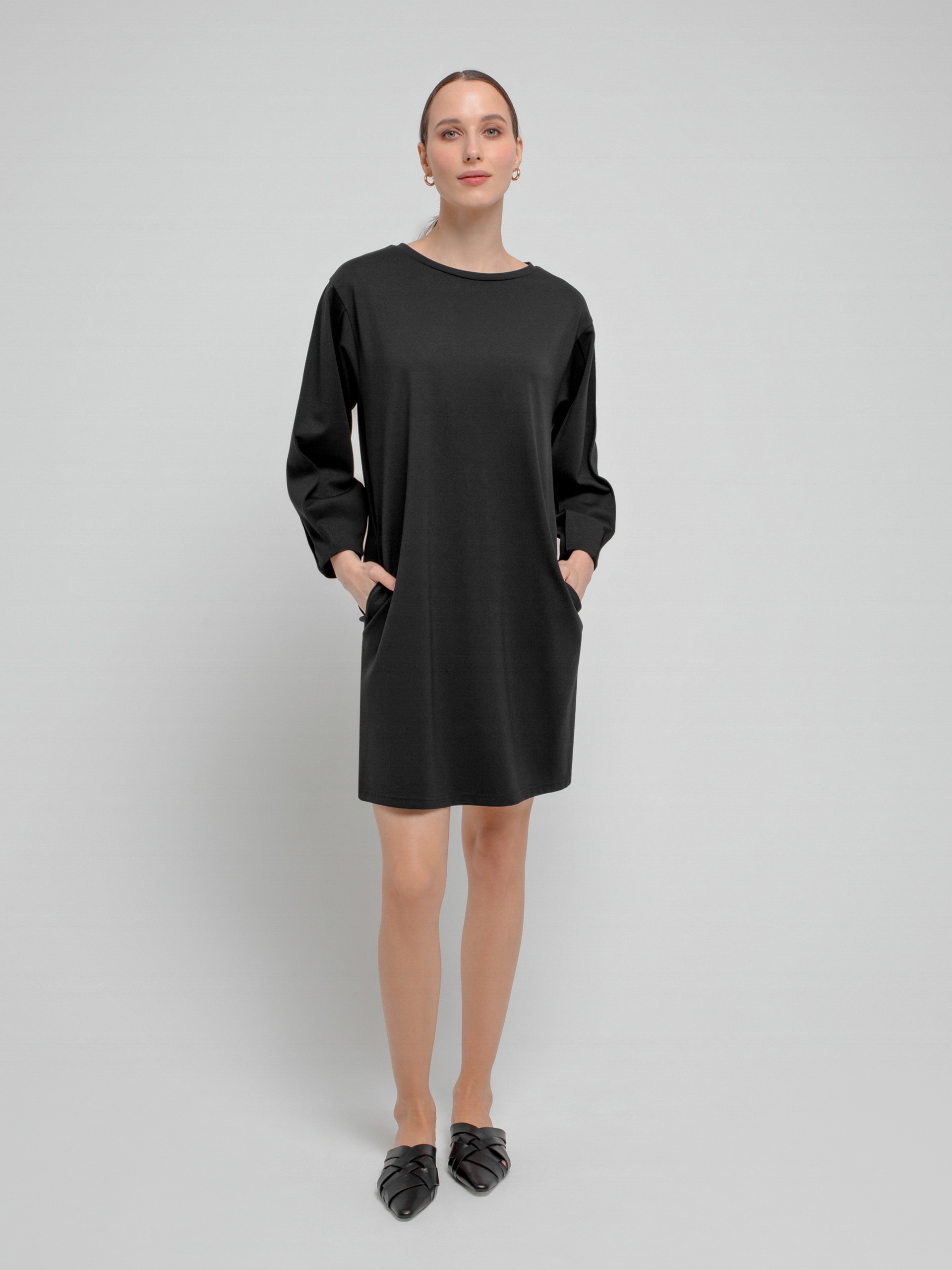 Трикотажное платье полуприлегающего силуэта с круглой горловиной и фантазийными рукавами на тонких манжетах....
