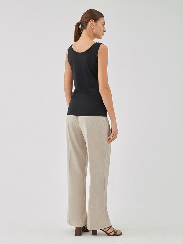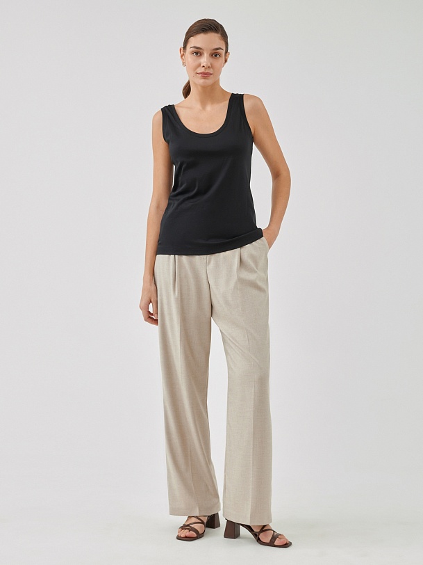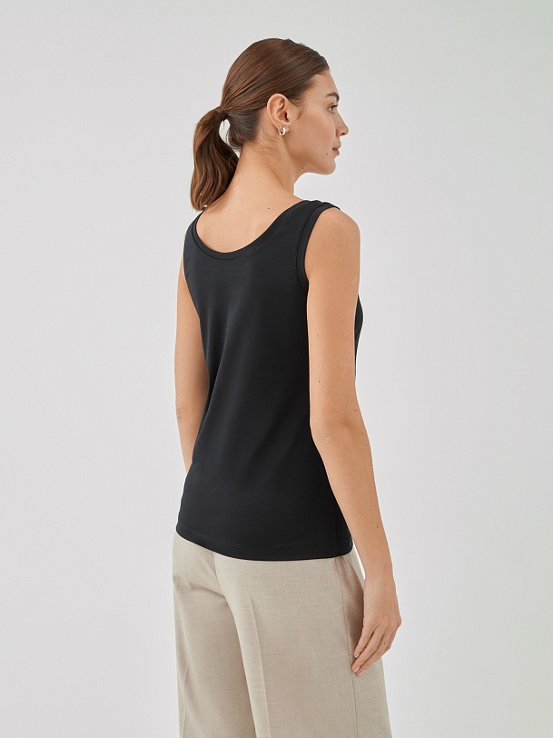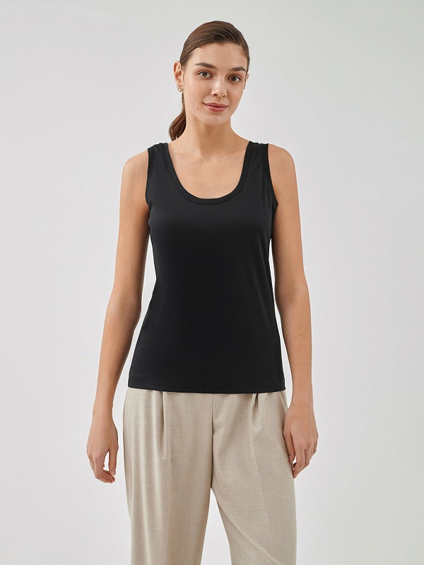 Идеальная черная майка - из тех вещей, без которых не обходится ни один базовый гардероб. Оптимальная длина позволяет носить майку как заправленной, так и на выпуск.