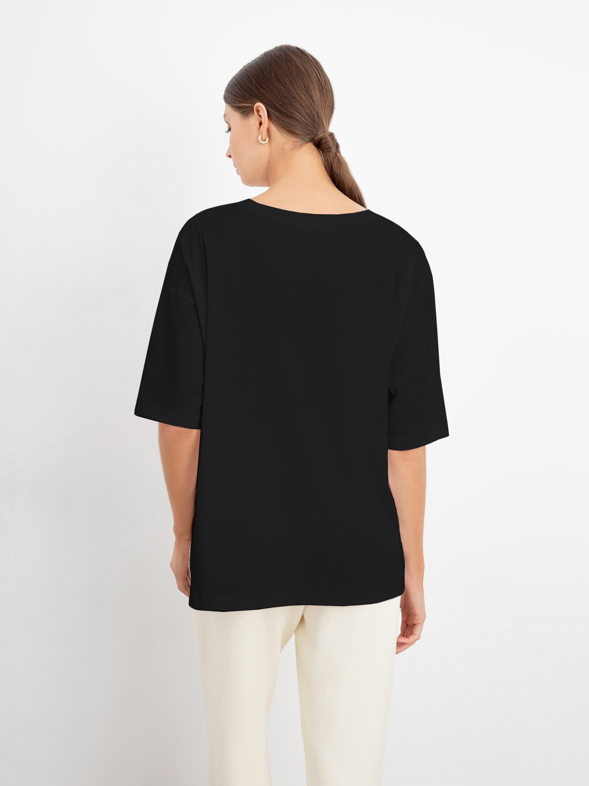 Футболка свободного силуэта черного цвета с разрезами по бокам, выполненная из мерсеризированного хлопка - необходимая вещь базового гардероба.