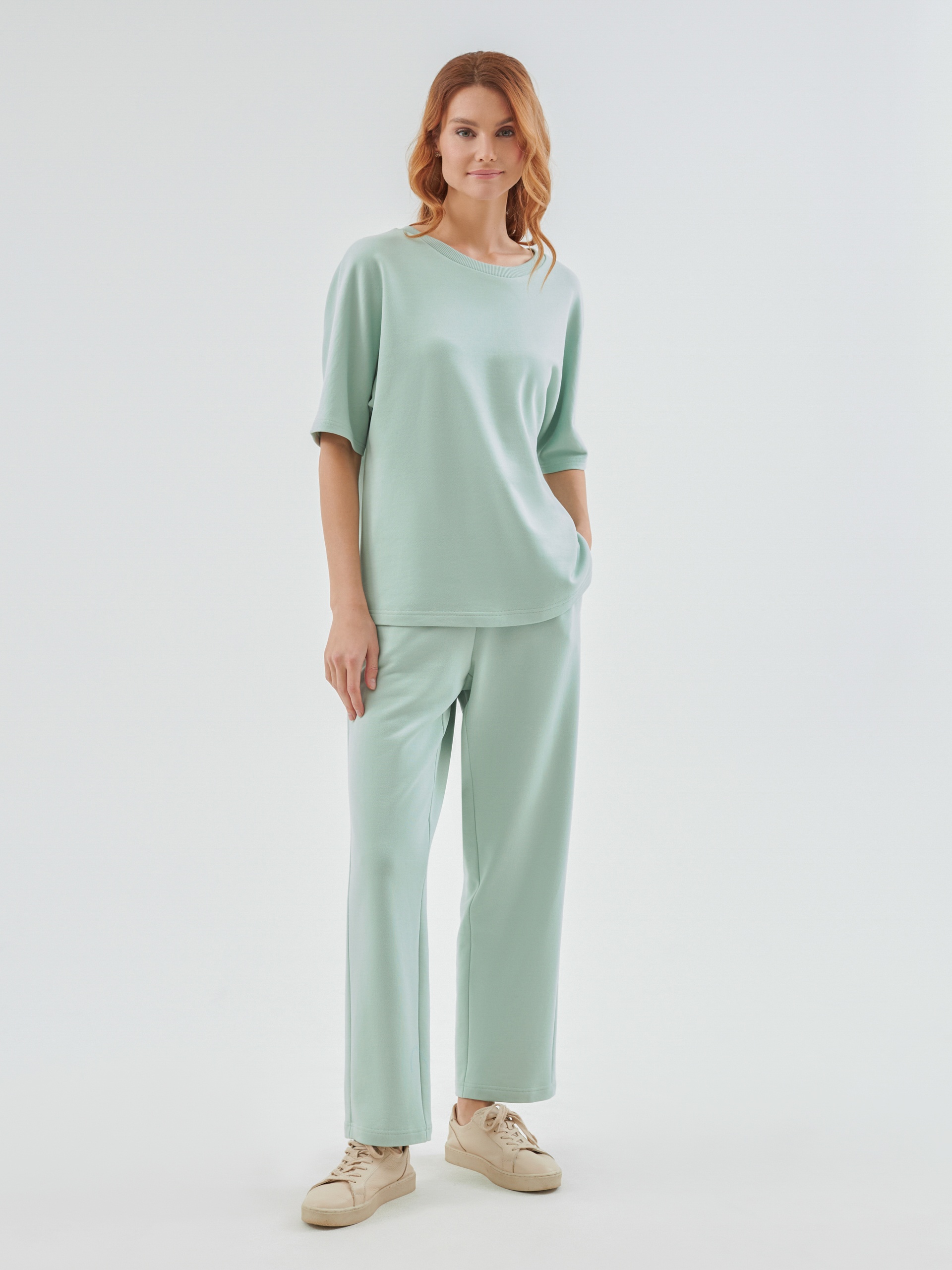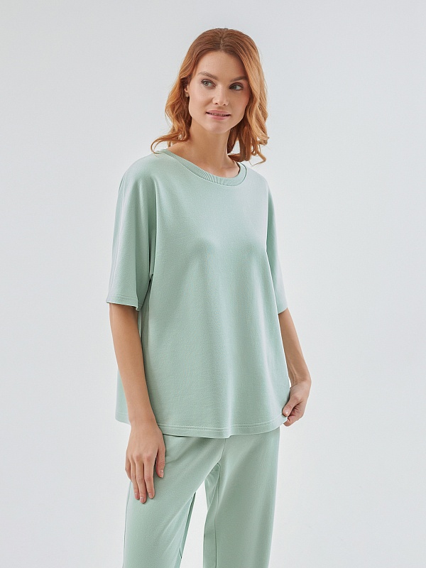 Джемпер из плотного хлопка без начеса. Широкая футболка для расслабленных образов на каждый день с шортами, брюками и юбками. Плотная ткань хорошо держит форму и сохраняет цвет после стирок.