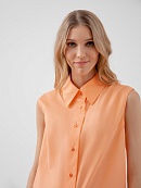 Блуза прямого силуэта без рукавов и разрезами по бокам, имеет классический отложной воротник. Выполненная из 100% хлопка в персиковым цвете.