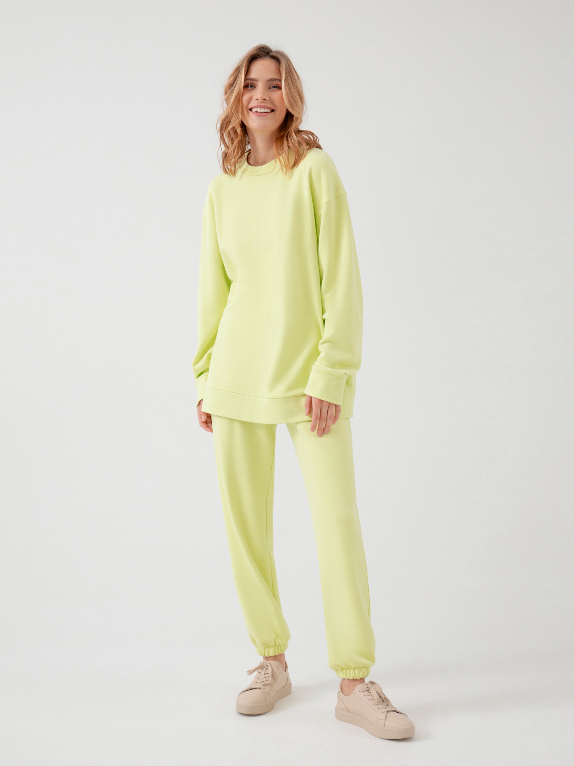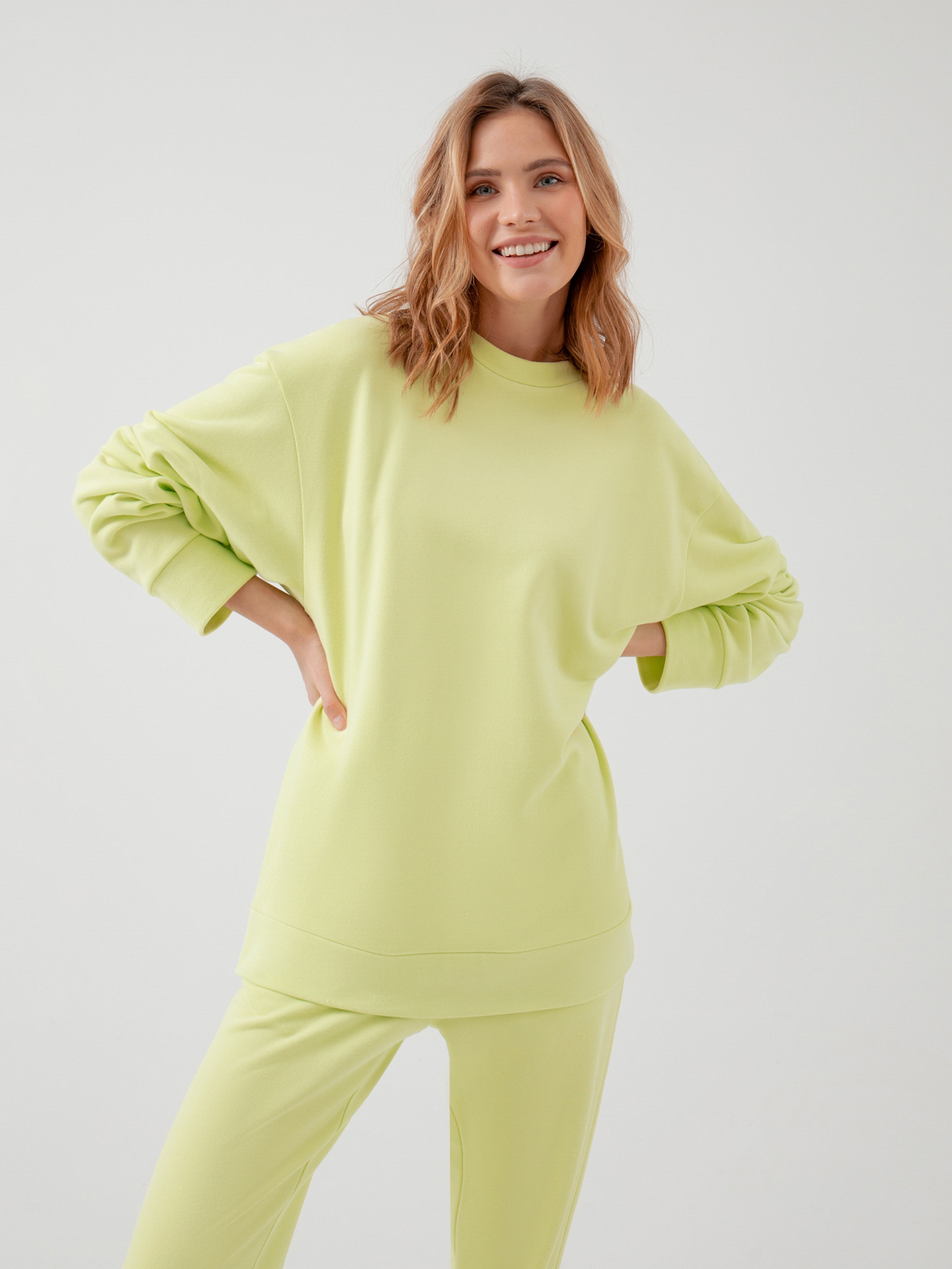 Толстовка из плотного хлопка без начеса. Она идеальна для расслабленных образов на каждый день с шортами, брюками и юбками. Плотная ткань хорошо держит форму и сохраняет цвет после стирок.