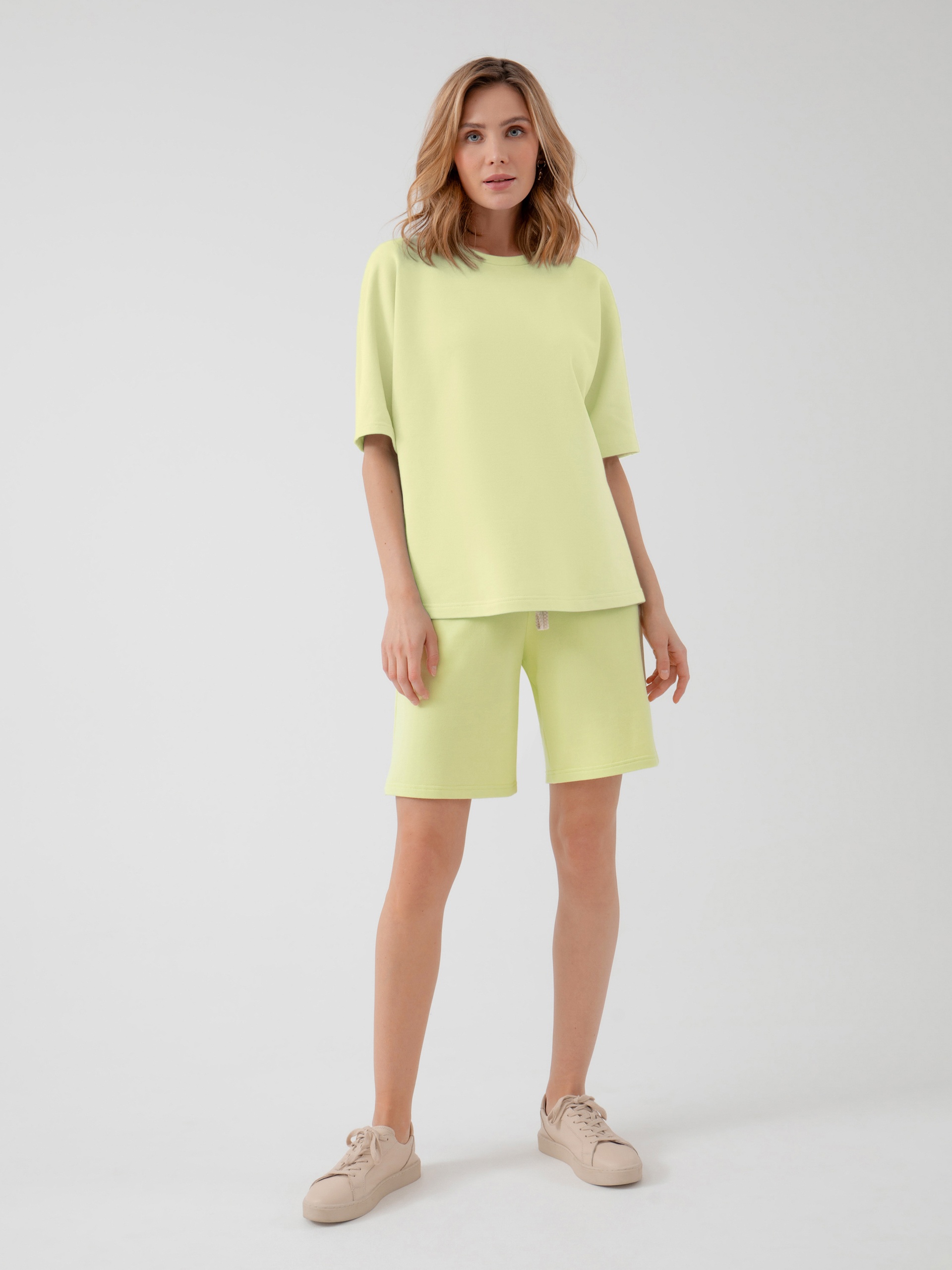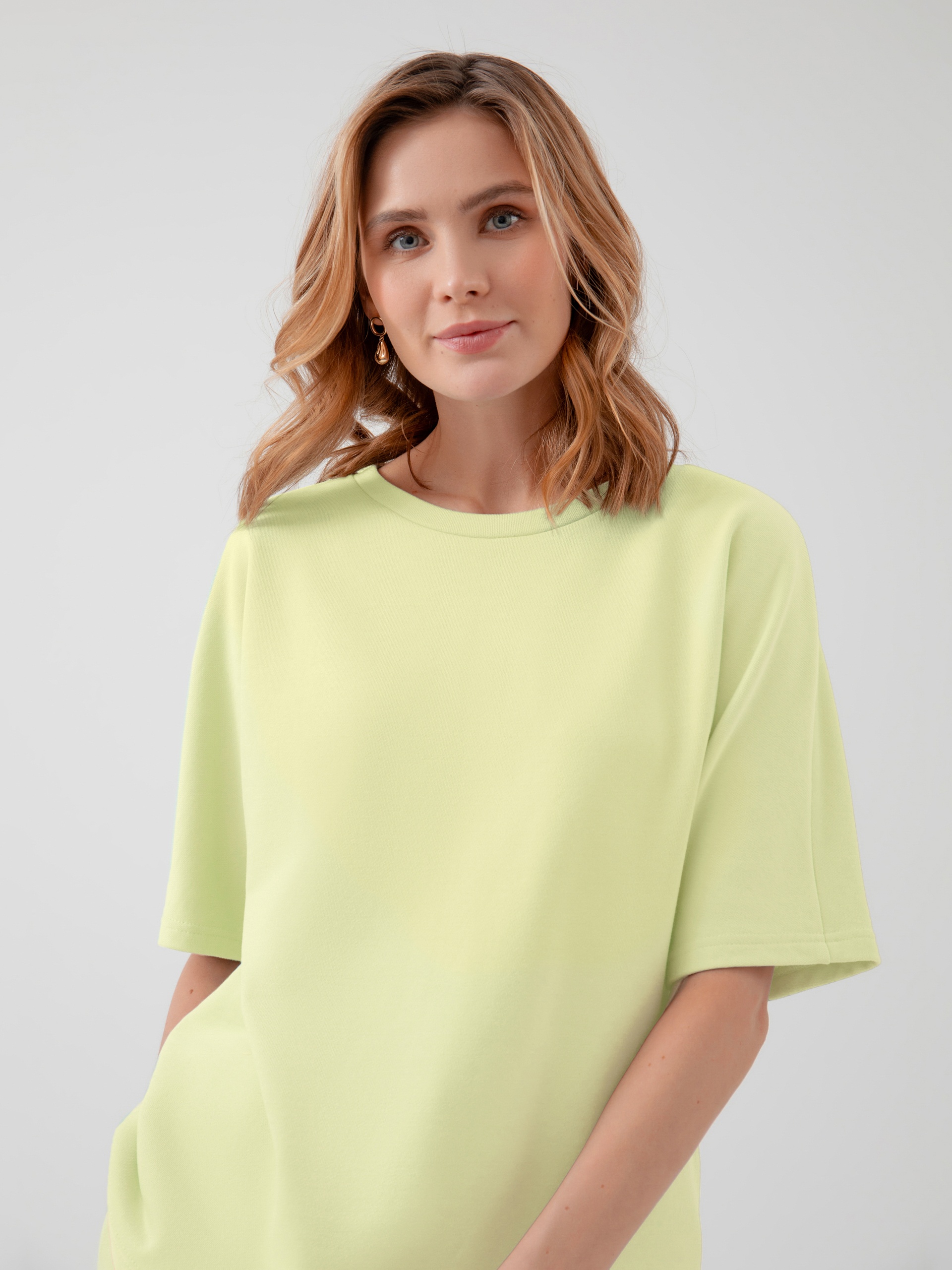 Джемпер из плотного хлопка без начеса. Широкая футболка для расслабленных образов на каждый день с шортами, брюками и юбками. Плотная ткань хорошо держит форму и сохраняет цвет после стирок.
