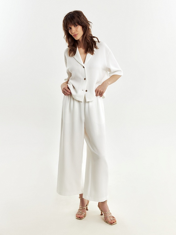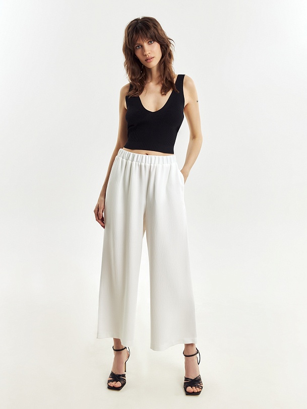 Укороченные широкие брюки из фактурной ткани