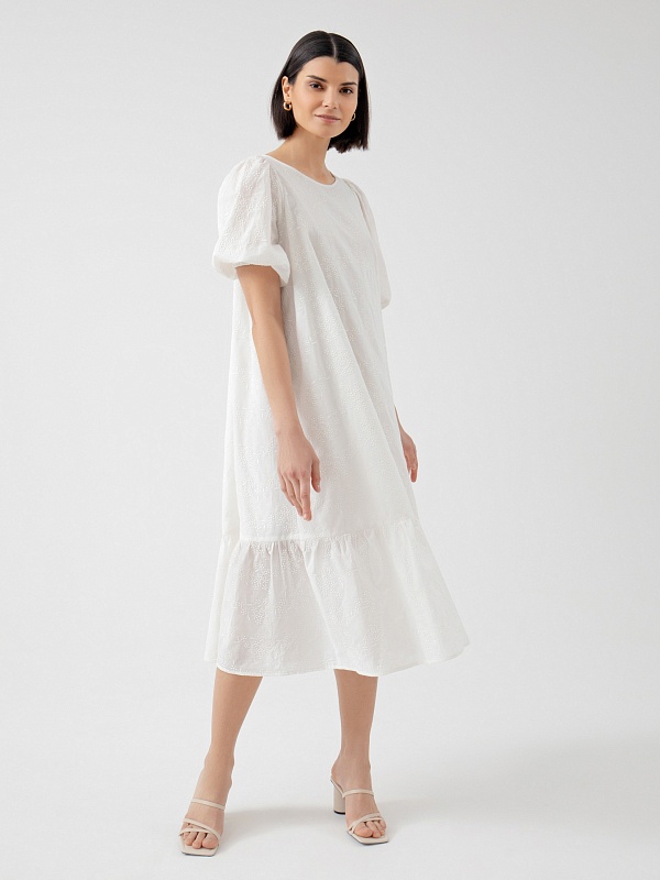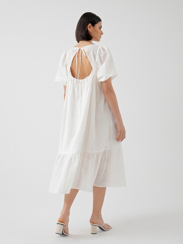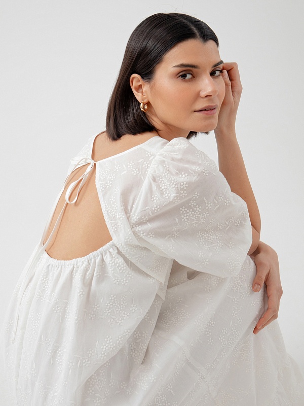 Объёмное хлопковое платье с вышивкой