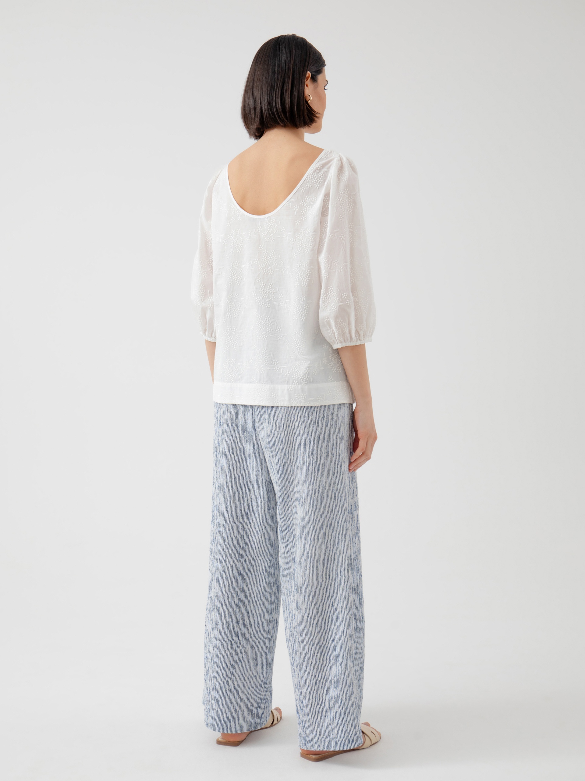 Хлопковая блуза с объёмными рукавами и открытой спиной