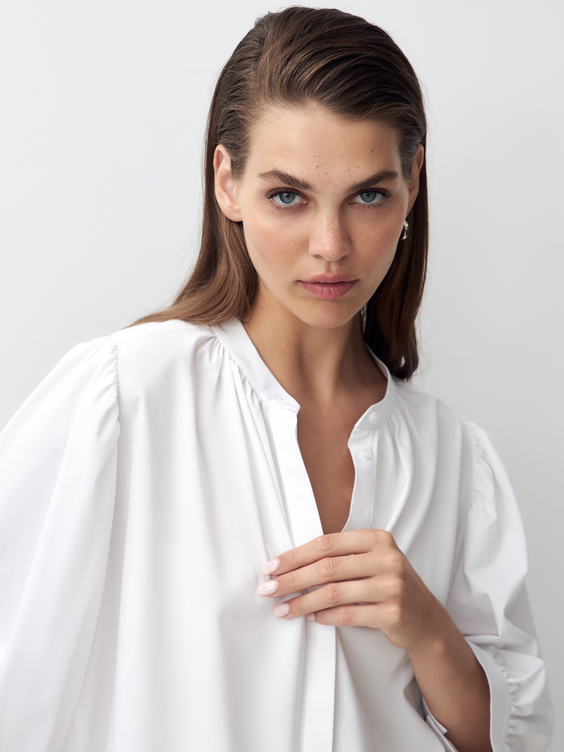 Хлопковая блуза с объёмными рукавами