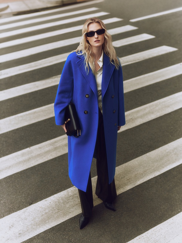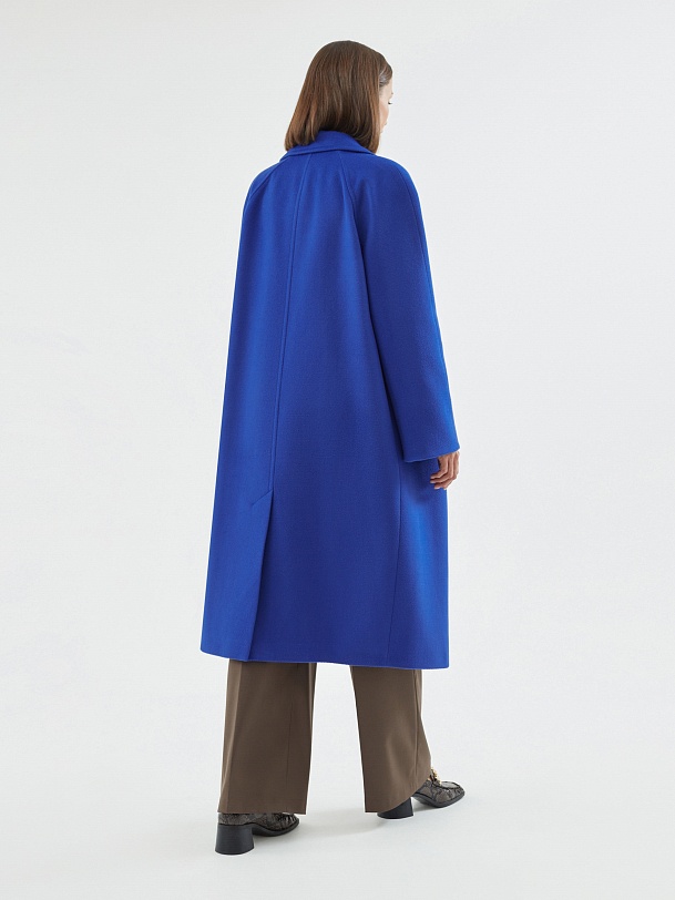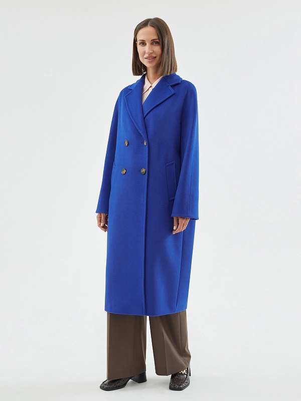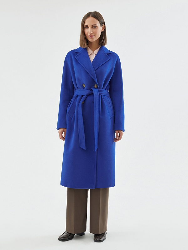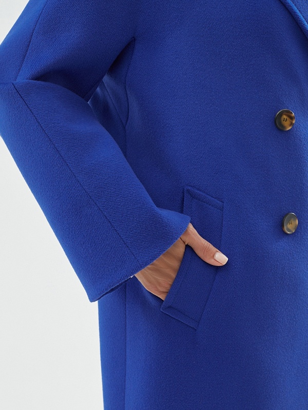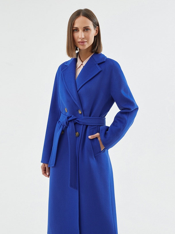 Двубортное пальто силуэта удлиненный кокон - это всем полюбившаяся классика пальто, представленная в новом виденье и в современных оттенках. Пальто комфортной длины ниже колена, что расширяет возможности для формирования образов. Рукав-кимоно создает уютный и расслабленный образ и не стесняет движений. Горловину пальто обрамляет классический широкий английский воротник. Пальто имеет два глубоких кармана с листочками. Застегивается на два ряда стильных крупных пуговиц. Дополняет образ съемный пояс, благодаря которому можно подчеркнуть талию. Пальто изготовлено из премиальной ткани с высоким содержанием шерсти в роскошном синем цвете. А для наилучшей защиты от непогоды пальто выполнено с использованием высокотехнологичной мембраны RaftPro. Произведено в Санкт-Петербурге.