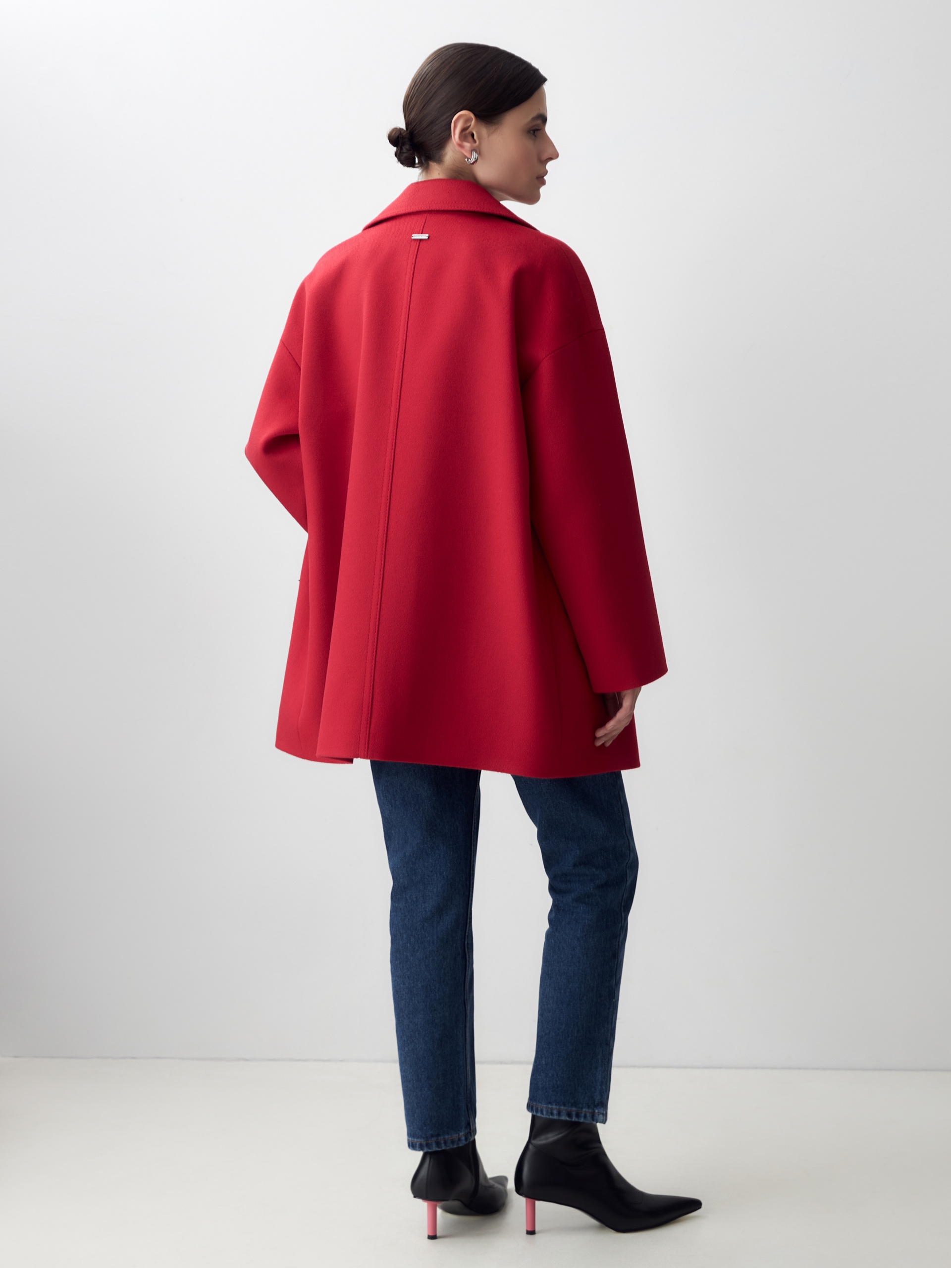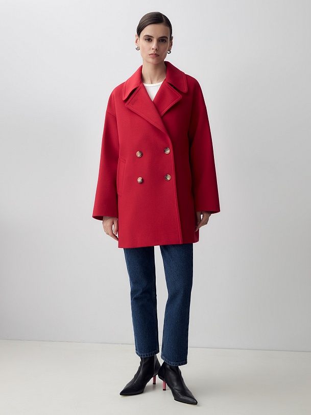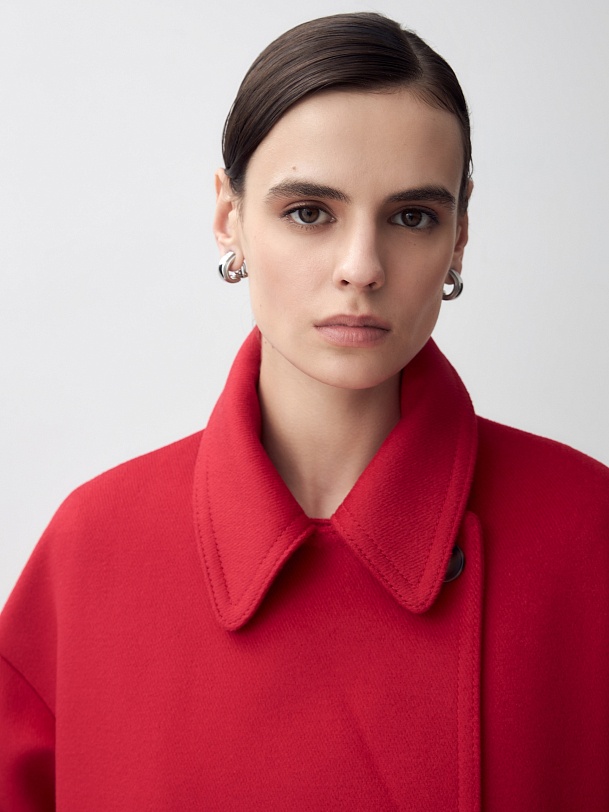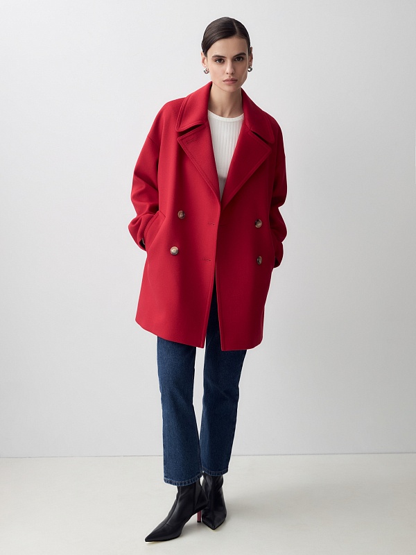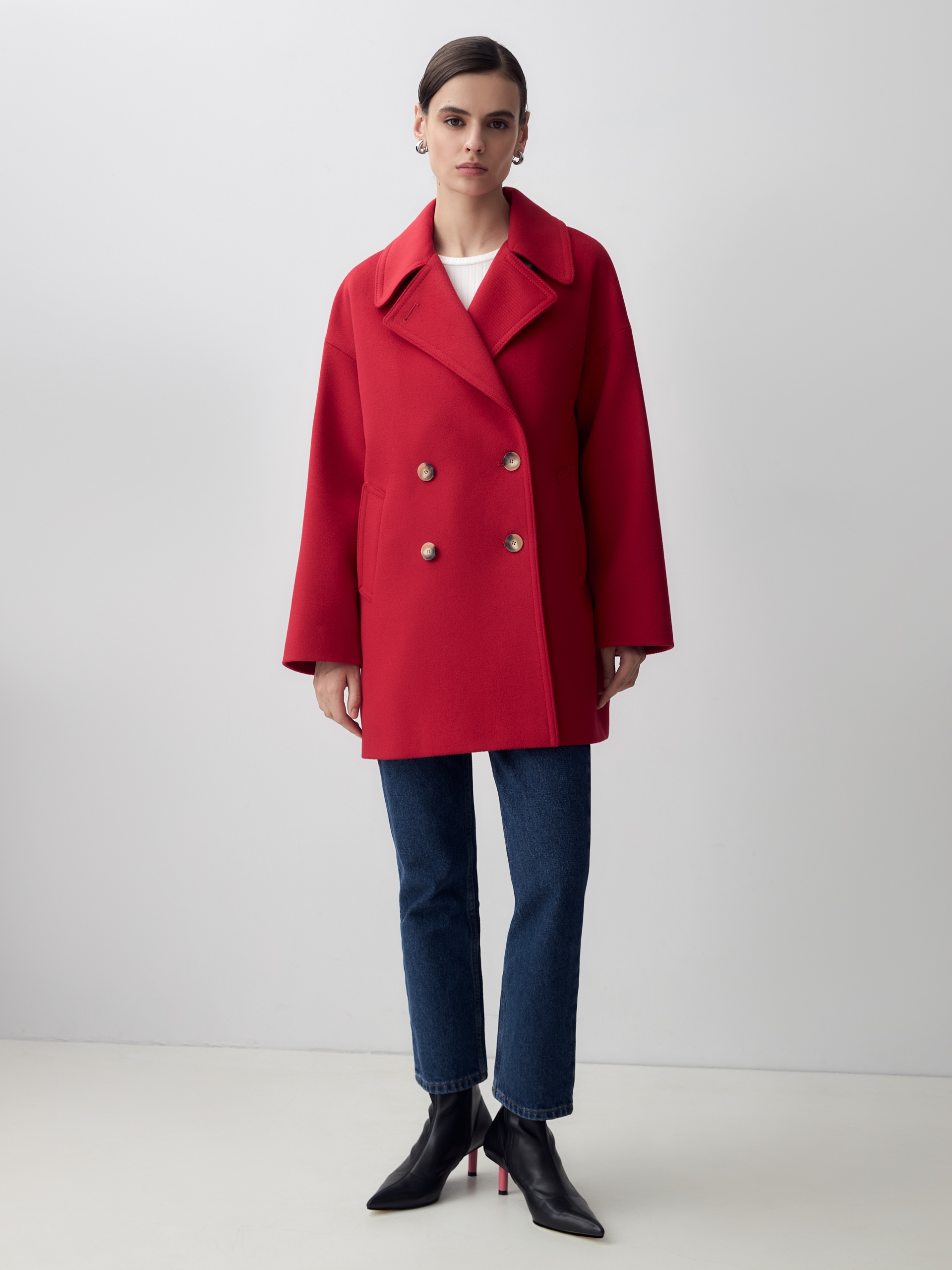 Двубортное полупальто из премиальной пальтовой ткани с эффектом диагональ в роскошном красном цвете. Это полупальто с минимум деталей: комфортный рубашечный рукав, не стесняющий движений, шировкий английский воротник, глубокие карманы с листочками. Пальто декорировано отделочными строчками. Застегивается на два ряда стильных пуговиц, имеет универсальную длину до середины бедра. Для наилучшей защиты от непогоды пальто выполнено с использованием высокотехнологичной мембраны RaftPro. Произведено в Санкт-Петербурге.