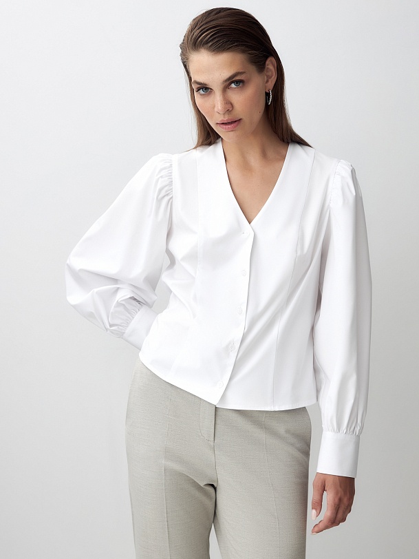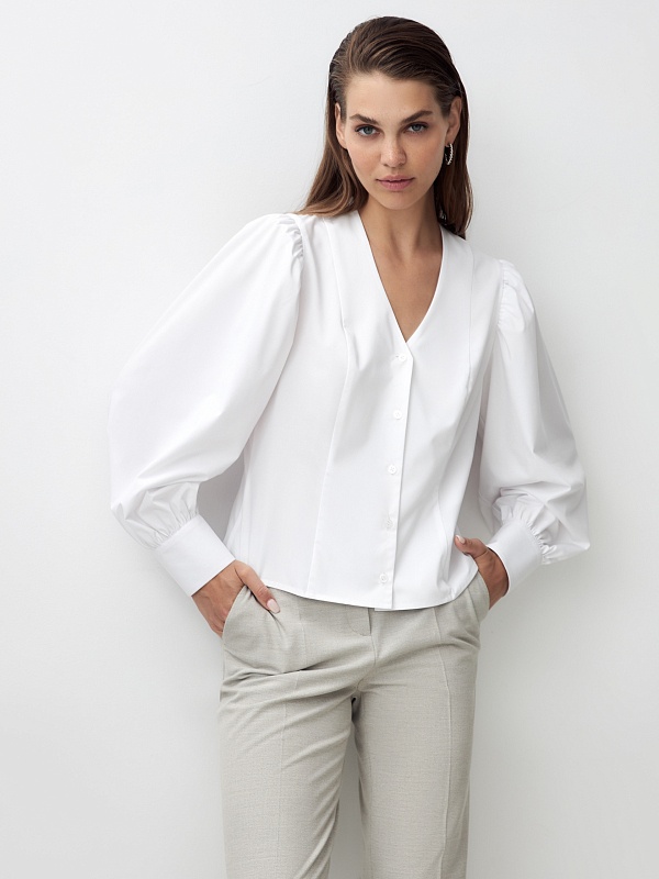 Хлопковая блуза с объёмными рукавами