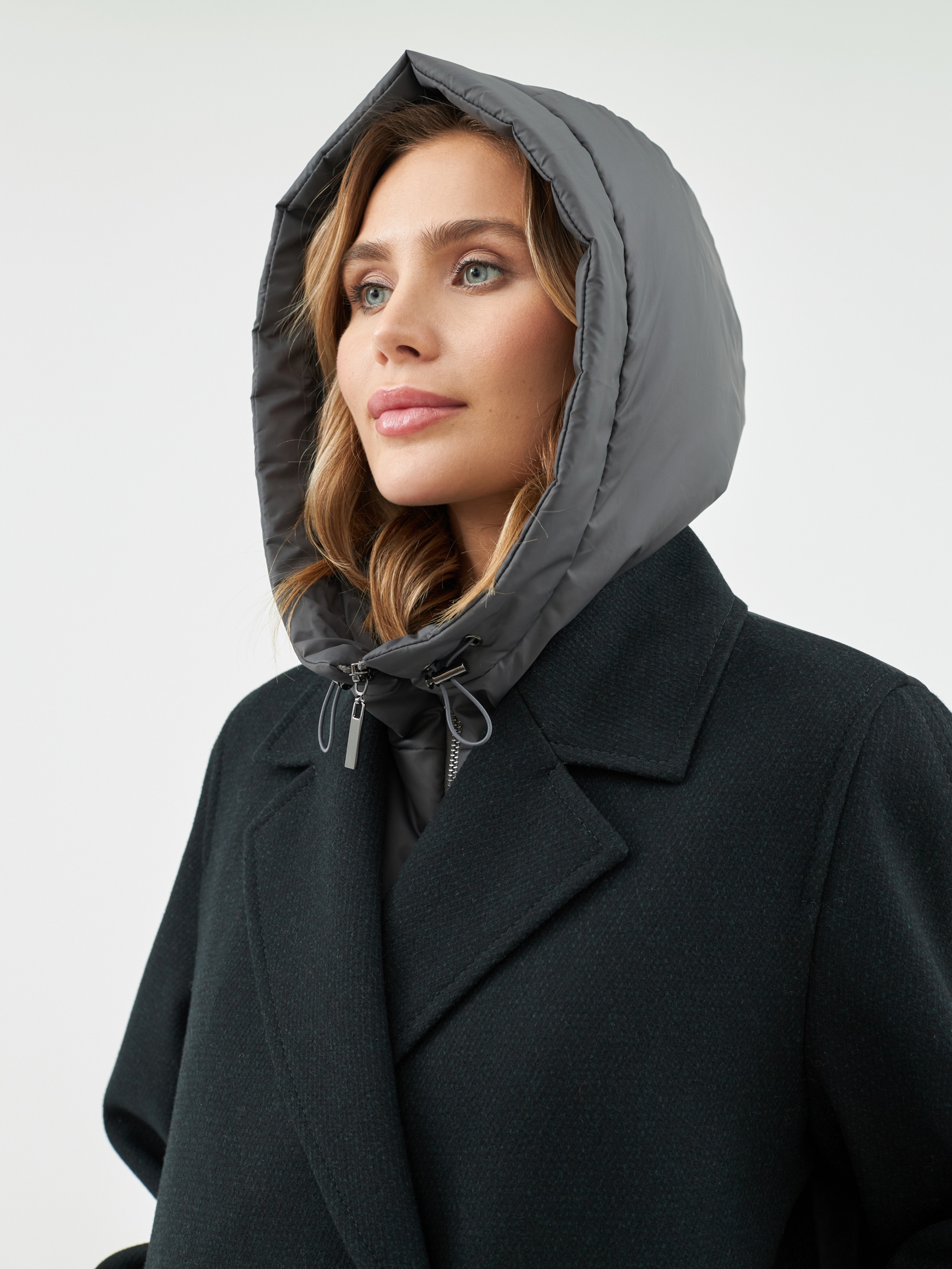 Шерстяное пальто с мембраной, утеплённой спинкой и съёмным капюшоном