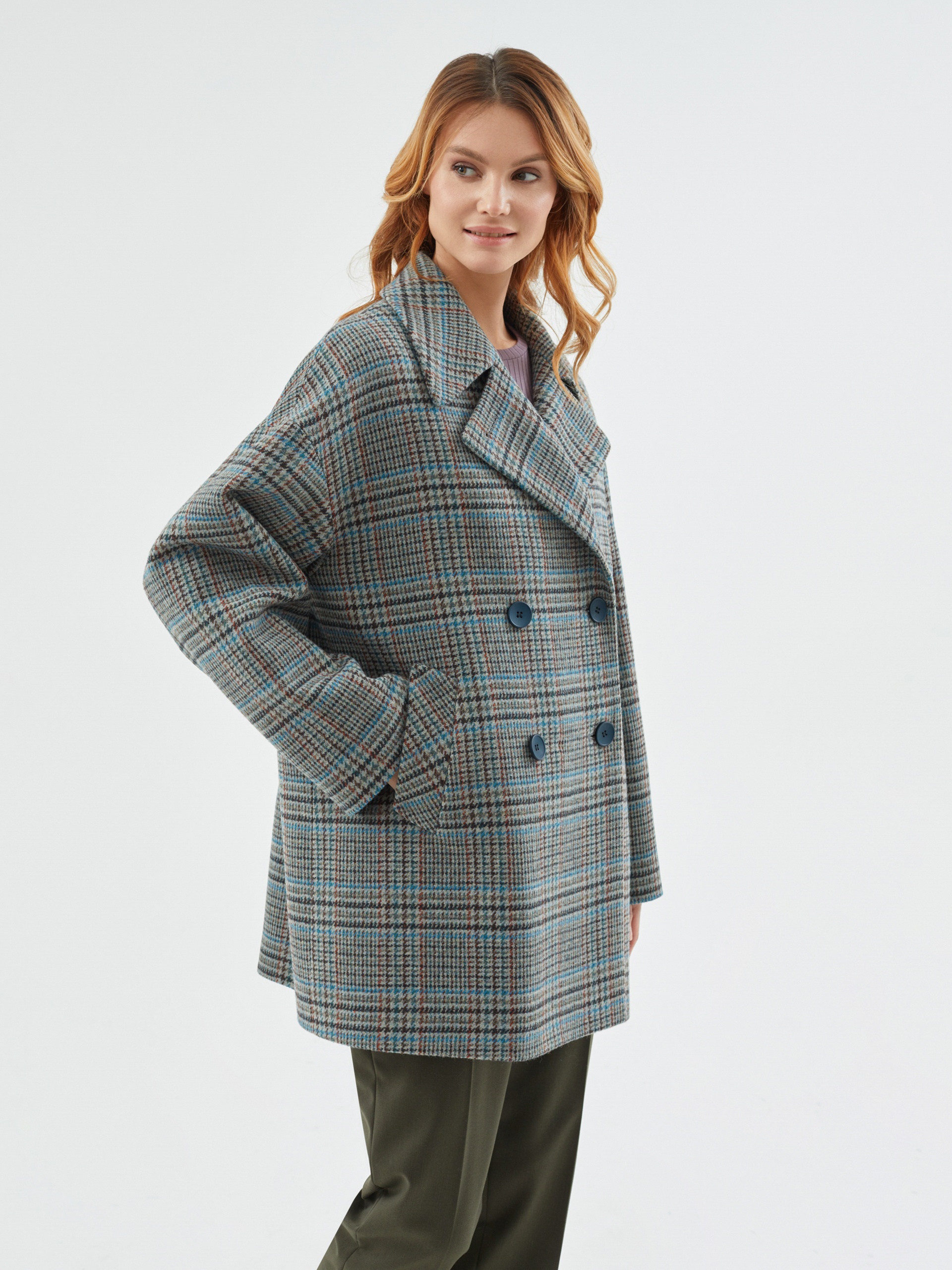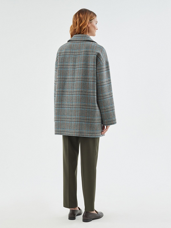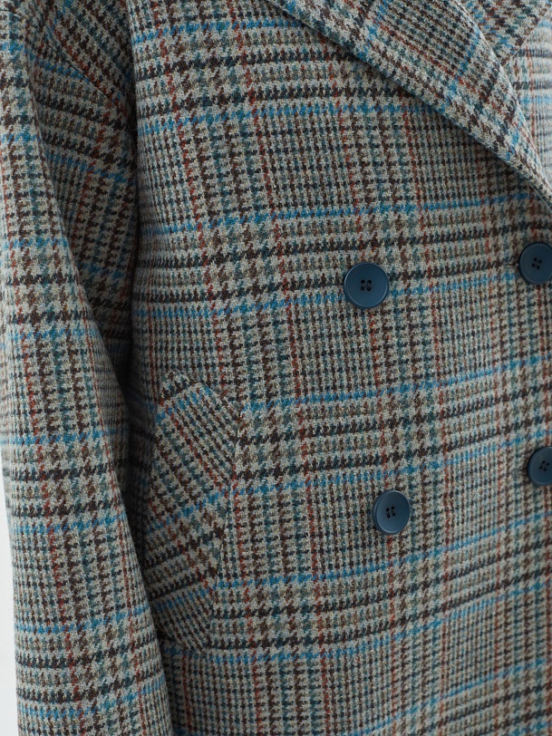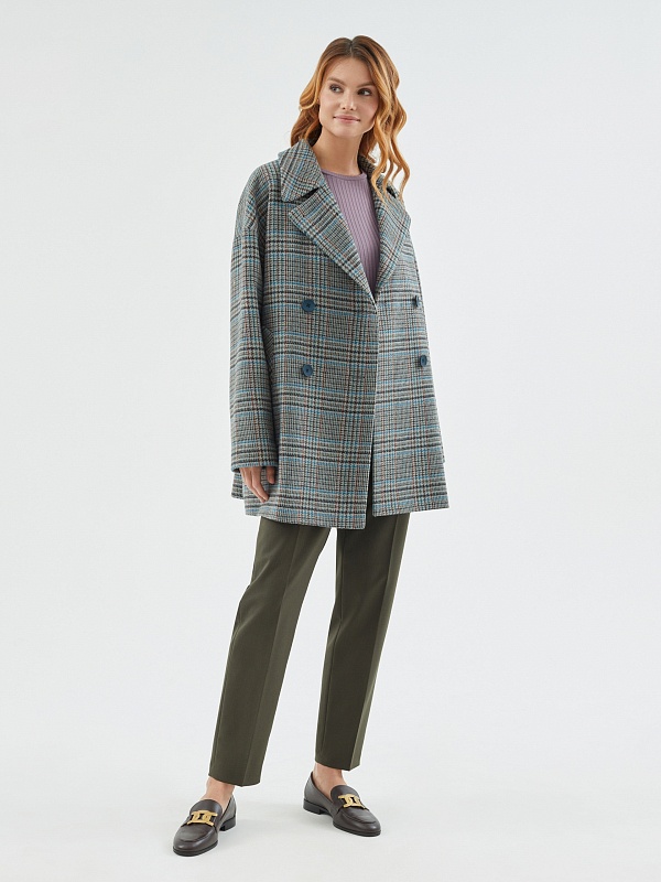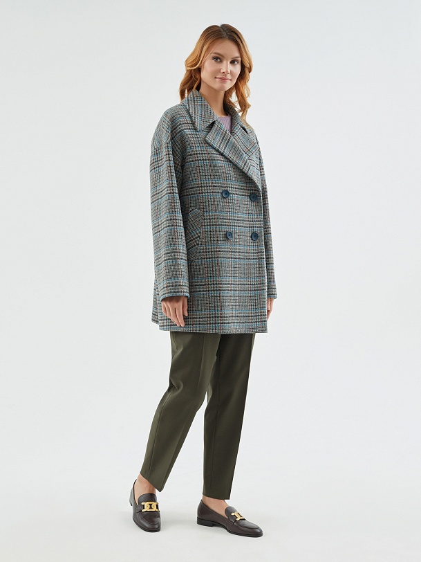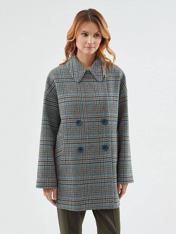 Двубортное полупальто из шерстяной пальтовой ткани в серо-изумрудную клетку. Это полупальто с уникальным сочетанием актуальных оттенков и минимумом деталей: комфортный рубашечный рукав, не стесняющий движений, шировкий английский воротник, глубокие карманы с листочками. Пальто декорировано отделочными строчками. Застегивается на два ряда крупных стильных пуговиц в цвет ткани, имеет универсальную длину до середины бедра. Для наилучшей защиты от непогоды пальто выполнено с использованием высокотехнологичной мембраны RaftPro. Произведено в Санкт-Петербурге.