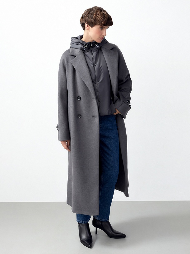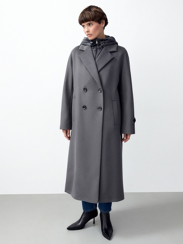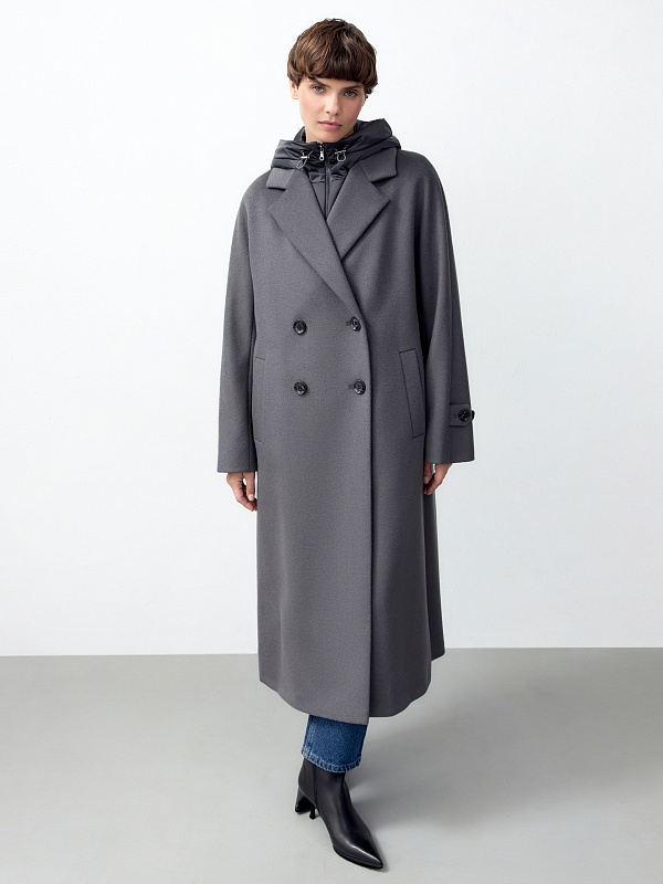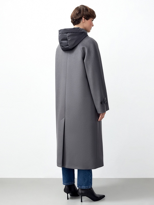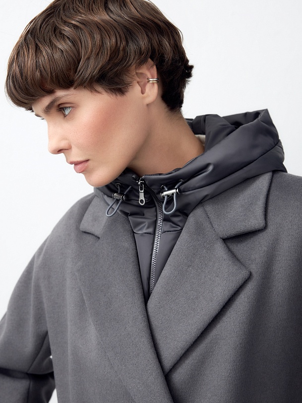Шерстяное пальто с мембраной, утеплённой спинкой и съёмным капюшоном