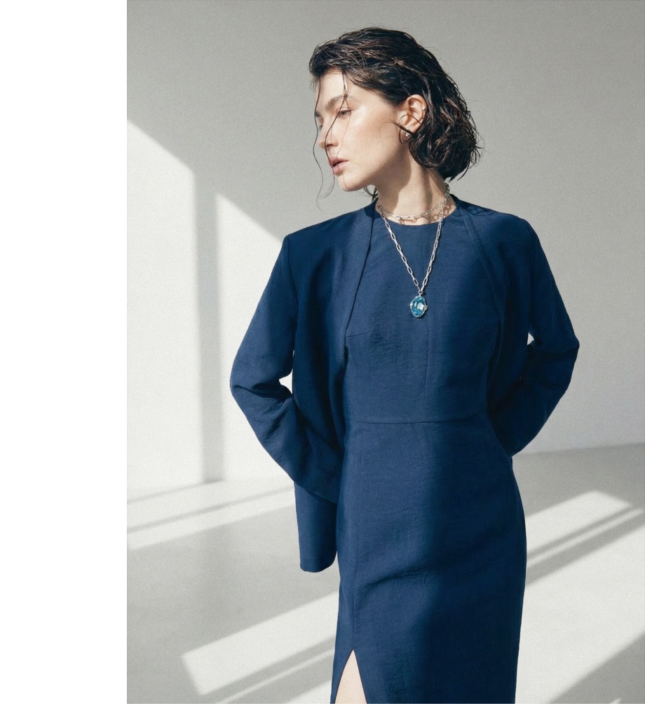 Мы соединили глубокий гипнотический синий с женственными силуэтами, а трендовая бретонская полоска перекочевала на фактурный трикотаж.
