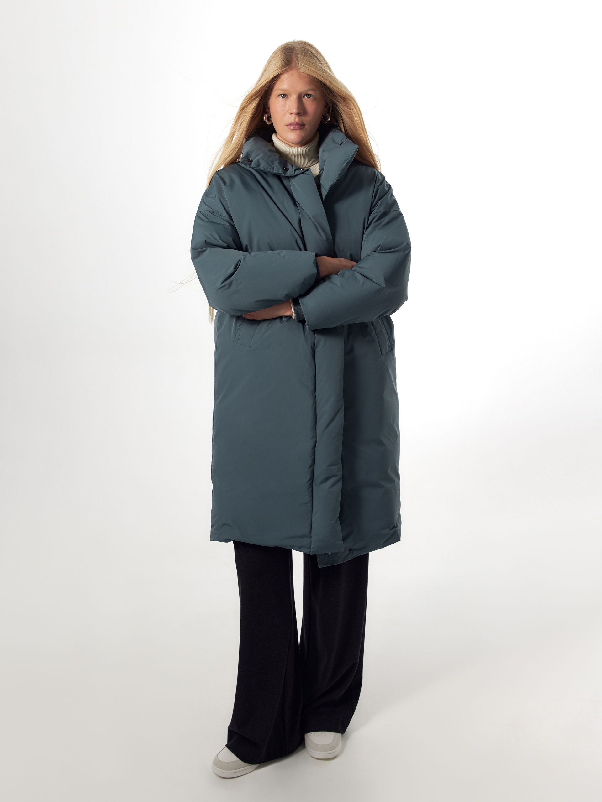Пуховики Pompa оснащены водоотталкивающим покрытием Durable Water Repellent (DWR), что делает их идеальными для капризной зимней погоды, когда дождь может неожиданно смениться снегопадом. Это покрытие предотвращает впитывание влаги, как будто вы стряхиваете капли дождя с зонтa.